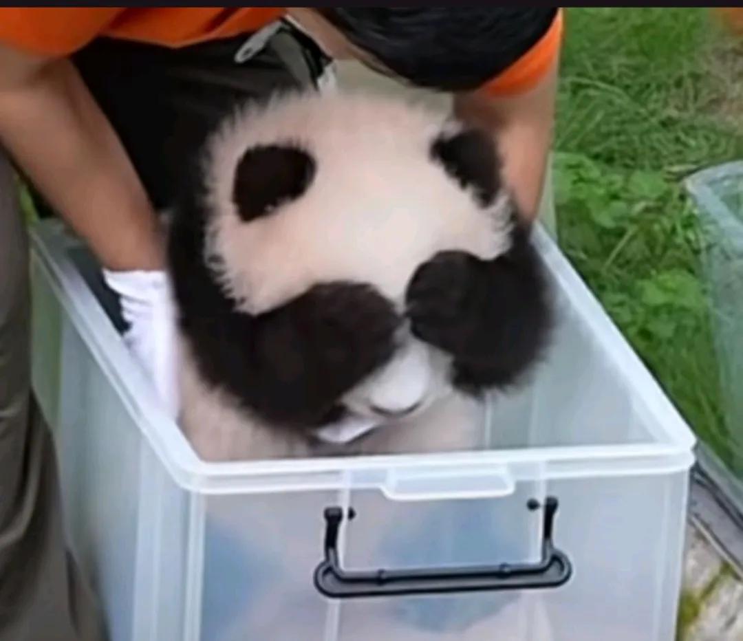 仔细看,放大看,奇三妹萌翻了! 这只可爱的小熊居然知道蒙眼睛,像极了躲猫猫,看不见我,看不见我! 墩墩奶爸对孙女也是宠爱满满,小心翼翼的抱着。那句话就是捧在手心怕掉了,含在嘴里怕化了。网友说,就差说这是奶爸自己生的啦! 就是说奇三妹这么可爱,哪能不宠呢?#熊猫趣事分享# #关爱大熊猫# #熊猫幼崽#