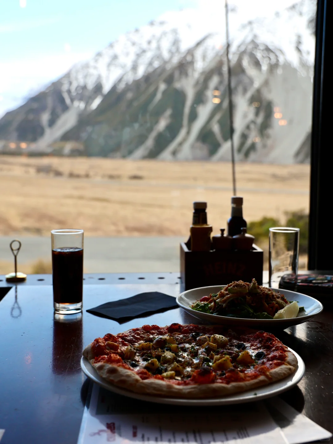 看着窗外的雪山,吃披萨的感觉超棒。饭后在餐厅右手边草坪可拍雪山星空🌌