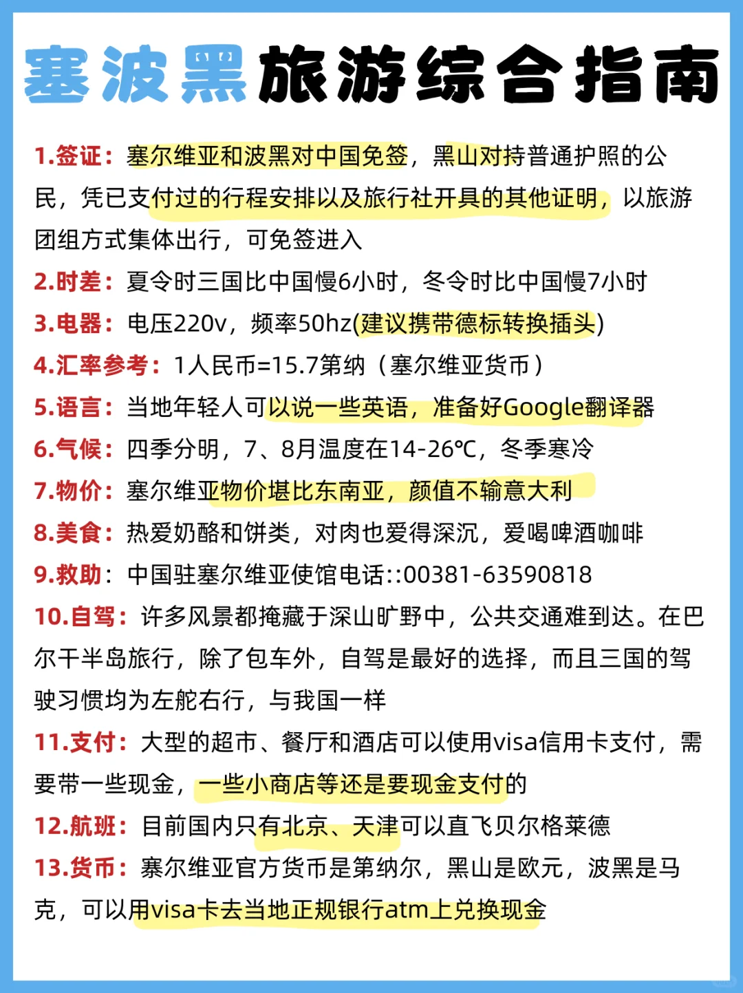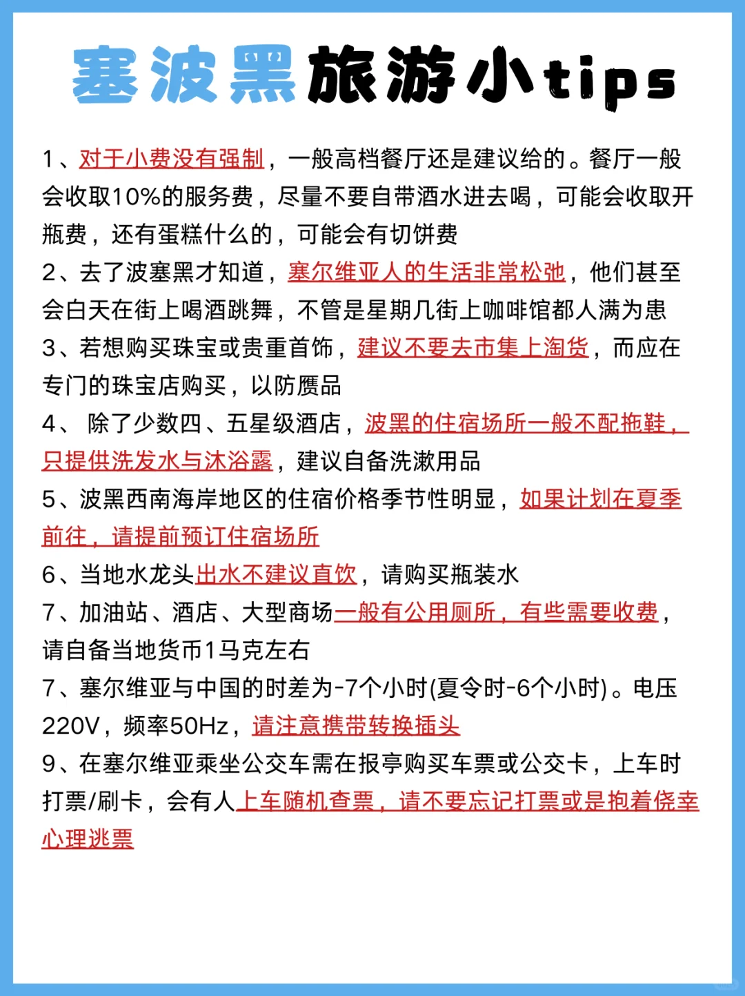 熬了一晚上整理的塞波黑旅行攻略‼️包括了行前准备、必备app、热门景点、注意事项和推荐路线!!请大数据把这篇笔记推给所有要来塞尔维亚+波黑+黑山旅游的姐妹们~走过路过不要错过,划过了就找不到啦❤️