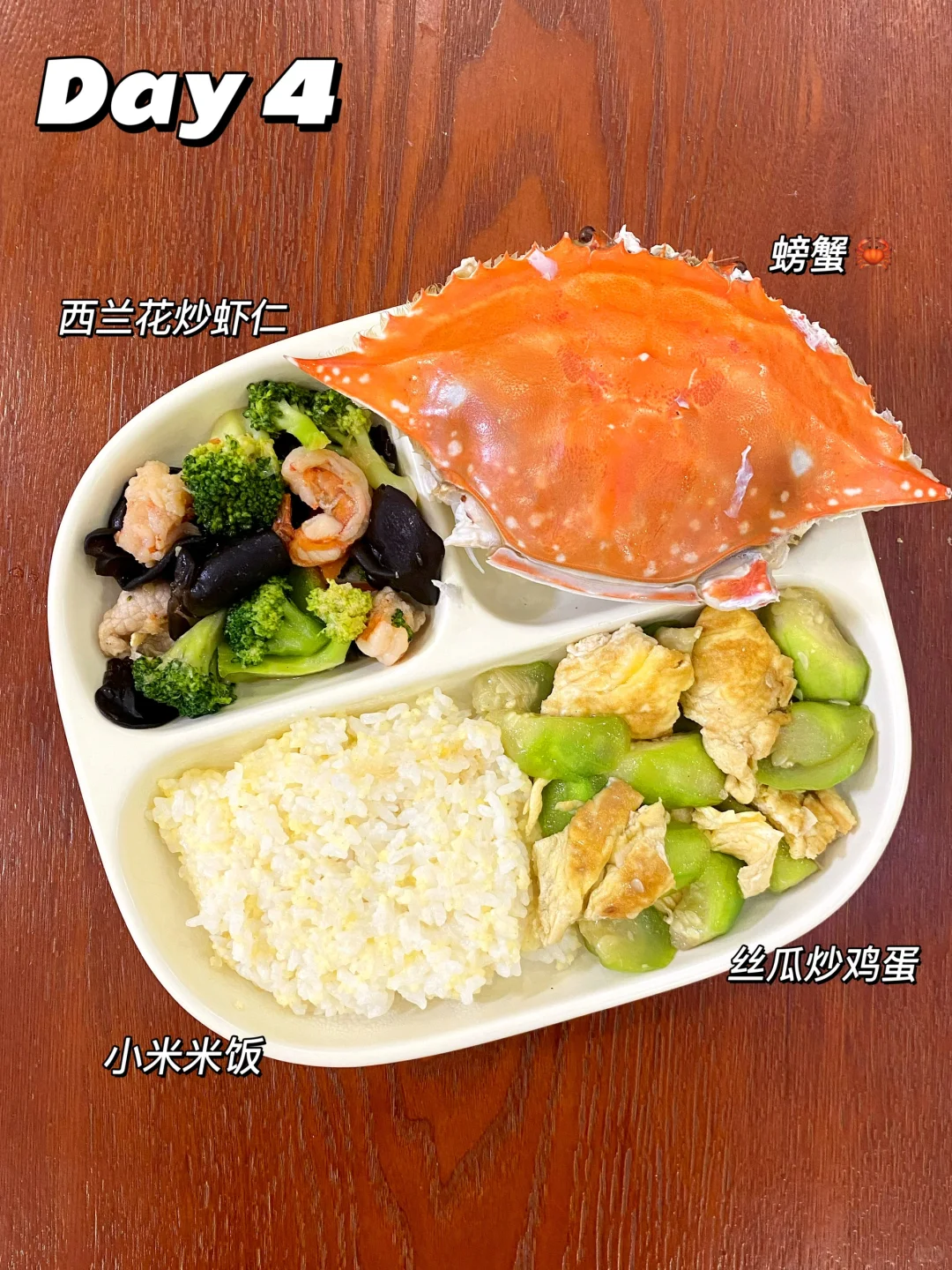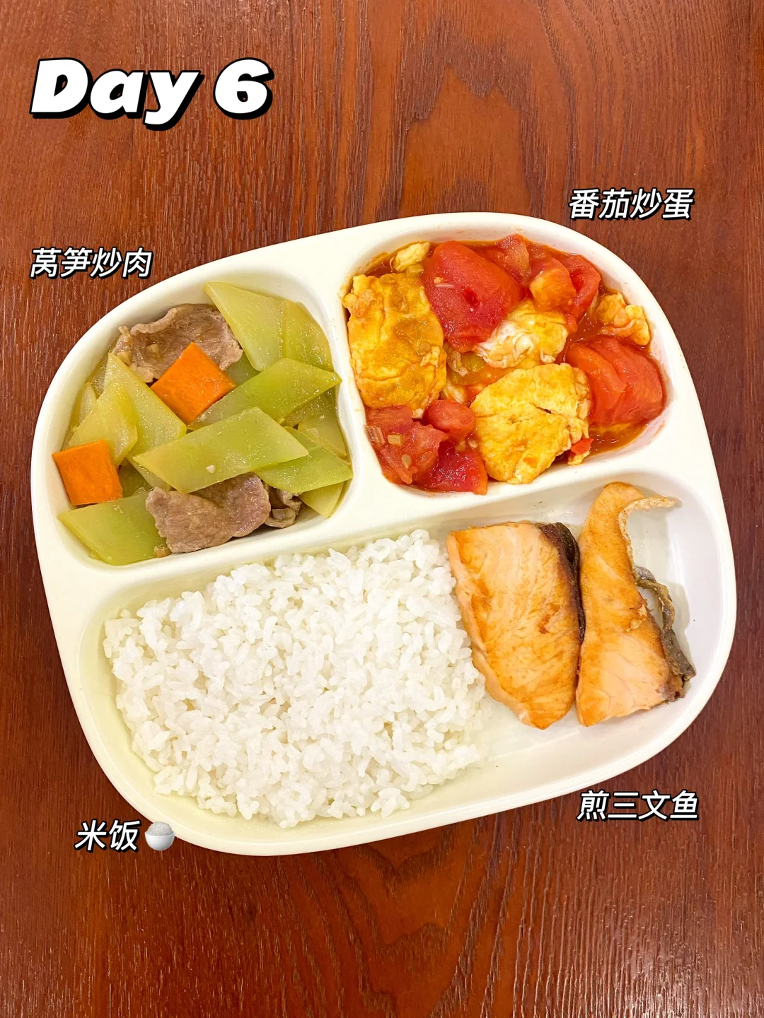 小学生不光有早餐,也有好好在吃晚餐哦‼️ 🌕DAY1 红烧排骨➕小葱炒蛋➕杏鲍菇炒肉➕杂粮米饭 🌕DAY2 包菜土豆牛肉➕白灼菜心➕炒虾➕米饭 🌕DAY3 番茄炒蛋➕小白菜炖粉条➕山药木耳虾仁➕紫米米饭 🌕DAY4 西兰花炒虾仁➕丝瓜炒蛋➕螃蟹➕小米米饭 🌕DAY5 芹菜炒粉➕烤鸡翅➕杂蘑炒肉➕米饭 🌕DAY6莴笋炒肉➕番茄炒蛋➕煎三文鱼➕米饭