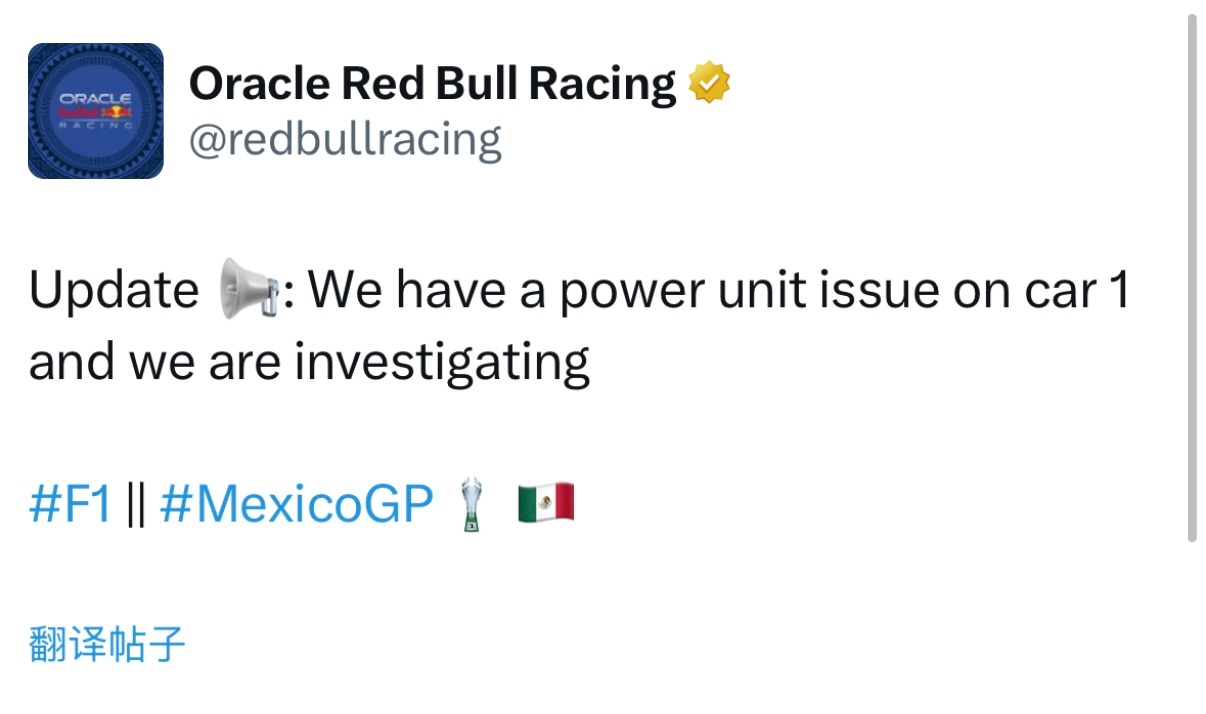 维斯塔潘赛车动力单元出现问题,车队正在检查。