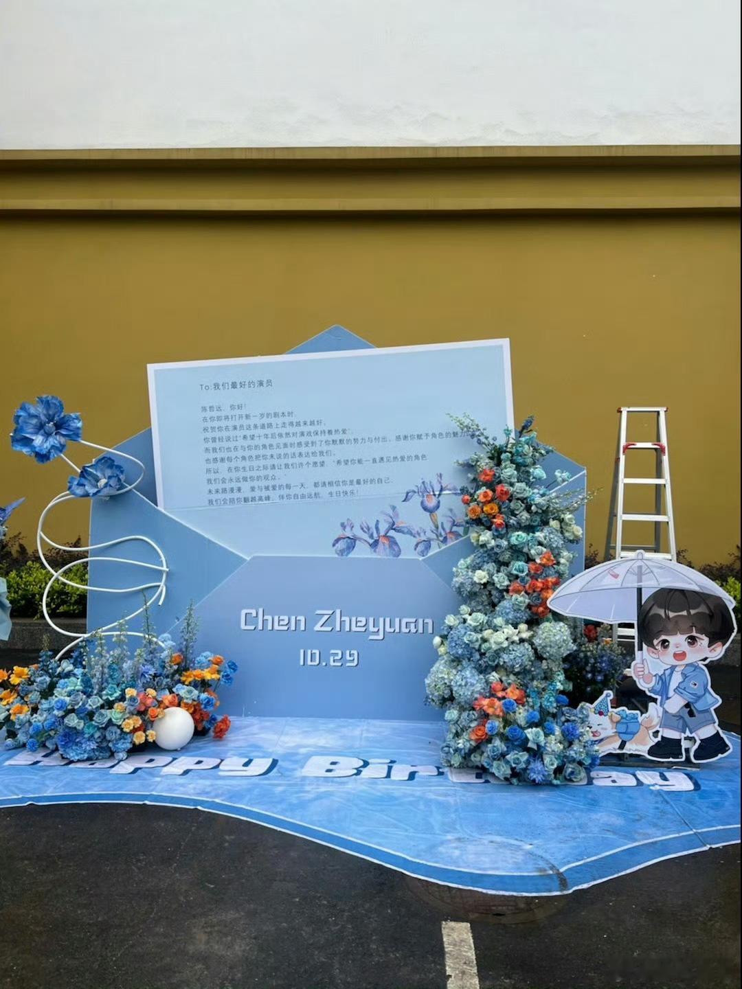 #陈哲远一笑随歌杀青粉丝应援# #陈哲远一笑随歌杀青线下应援# 陈哲远《一笑随歌》杀青,粉丝们以花墙、花篮、互动展板和易拉宝等形式为他打造了一个独特的应援场景,为他送上最美好的祝福,杀青大吉!