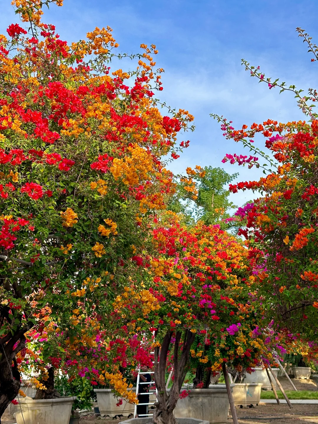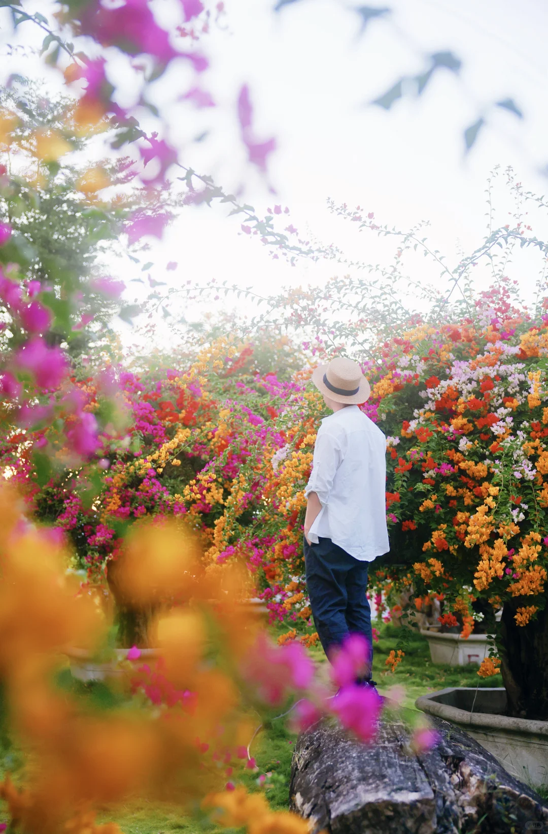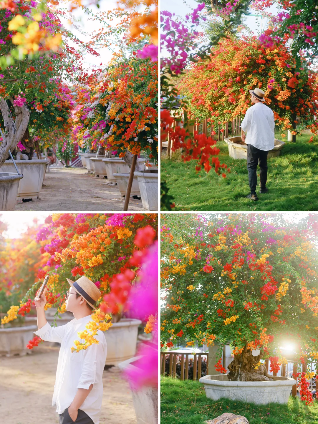 哇[哇R] 今天拍哒![自拍R]10月24 七彩三角梅又又来啦💐 盛开期!快去!不下雨的话还能坚持两周 这里是一个盆栽园林 大颗的七彩三角梅摆满两旁 不用门票哒、也很欢迎的来拍照打卡[哇R] 有草地、有假山、有石头,还有小梯子🪜 角度多多[萌萌哒R]最近天气好舒服,快出来拍美照吧[自拍R] 定位:晟欣园林有限公司 交通:佛山2号线花卉世界站C出口步行10分钟
