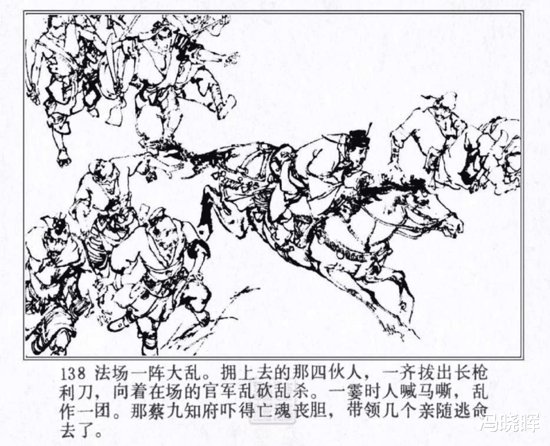 当时江州城里出动数千人马,马军当先,他们都是顶盔衣甲,全付弓箭,手持长枪,背后步兵簇拥,摇旗呐喊,杀奔而来。但经不住不要命的众好汉奋力拼杀,官兵大败而逃。