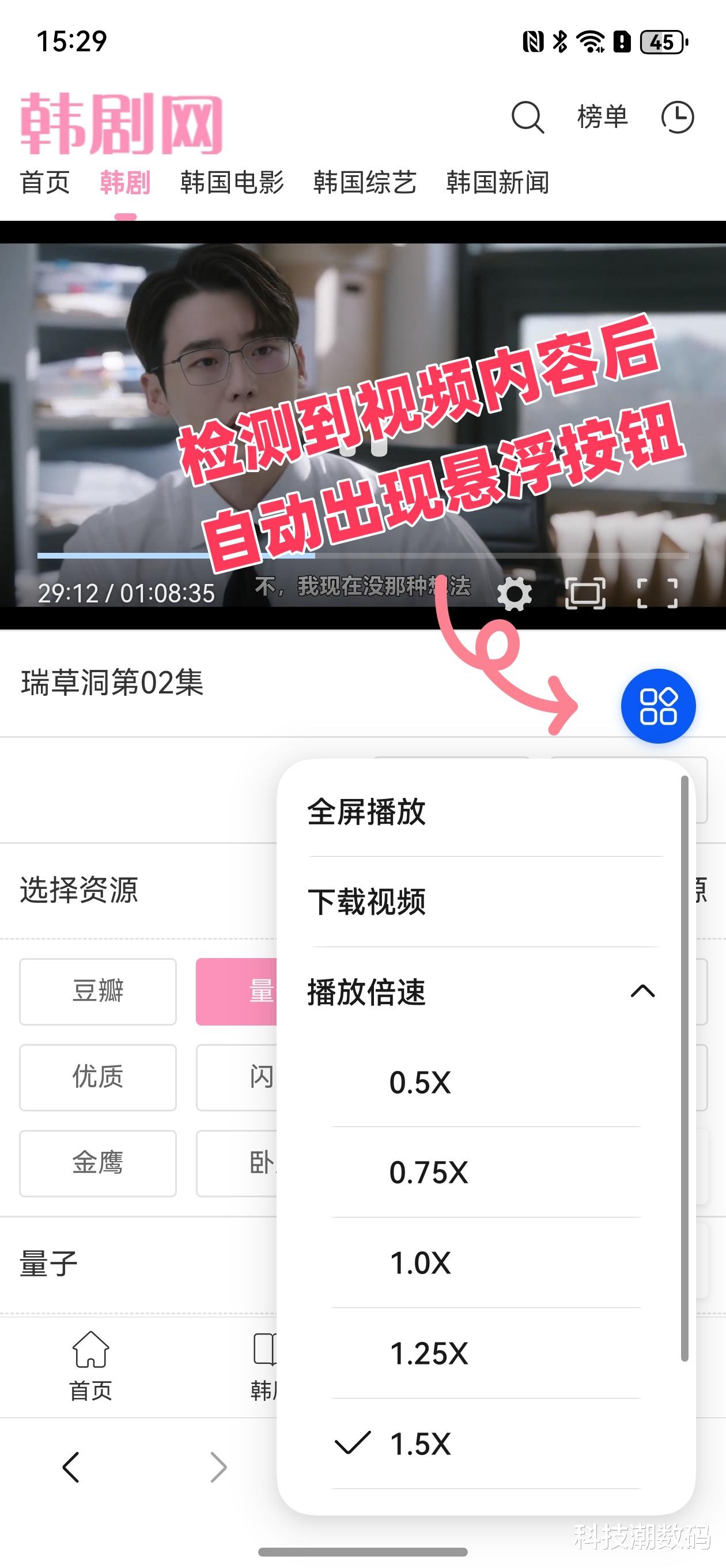 直到最近我的手机升级鸿蒙5系统后,发现用系统自带的华为浏览器app追剧时,网站页面视频下方会自动出现一个“蓝色悬浮框”,点击按钮,可以进行全屏、下载、倍速播放等操作,从0.5到3.0倍速可随心选择,无论是想快速刷完剧情,还是放慢看细节,都毫无压力。