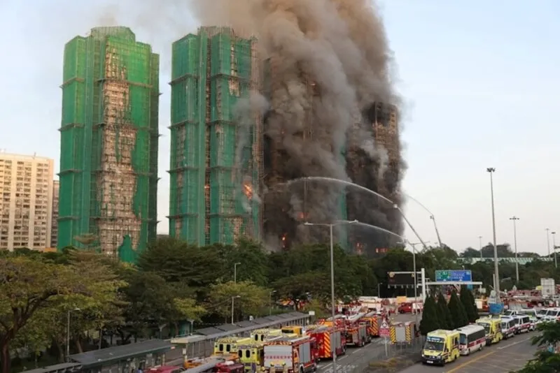 真是痛心。11月26日下午2点51分,香港大埔宏福苑突发五级大火。火势从一座楼的外墙棚架烧起,一个小时内蔓延到8座大楼中