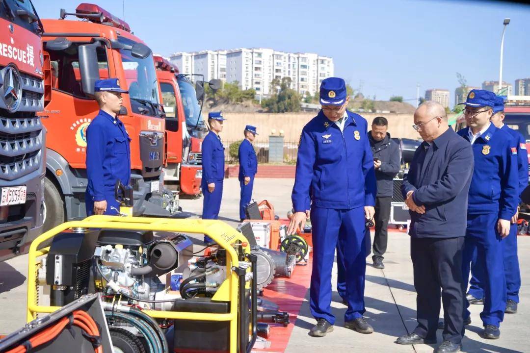 慰问组一行首先抵达位于呈贡区石龙路的昆明市消防救援支队国家山岳救援昆明大队,现场观摩了消防救援实战训练科目演练、参观了解装备设施的配备现状,详细了解了支队在日常训练、抢险救援等方面的情况。昆明市消防救援支队自2018年改制转隶以来,为维护昆明经济社会稳定和人民生命财产安全作出了突出贡献,虽然任务繁重,但是成绩卓著。