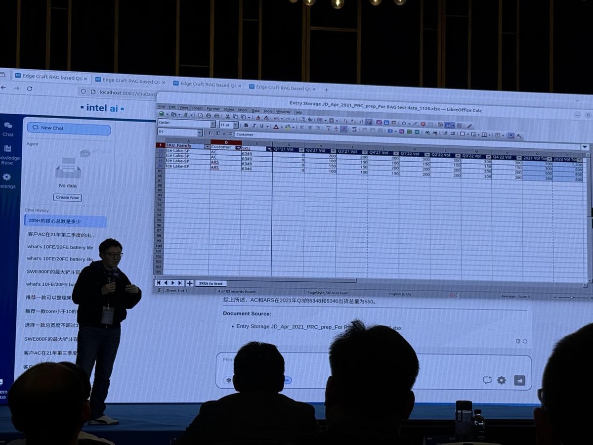 这不仅仅是关键词匹配,而是AI理解了文档内容。英特尔技术专家还展示了基于Excel销售报表的问答:“查询AC这个客户2021年第三季度的出货量”,AI NAS直接给出了数据,甚至能分析出“从0到300”的增长趋势。