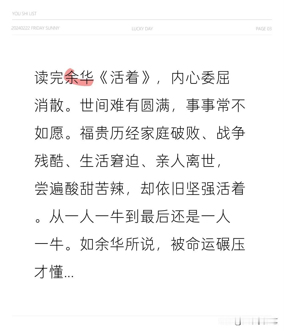 读完余华《活着》,内心委屈消散。