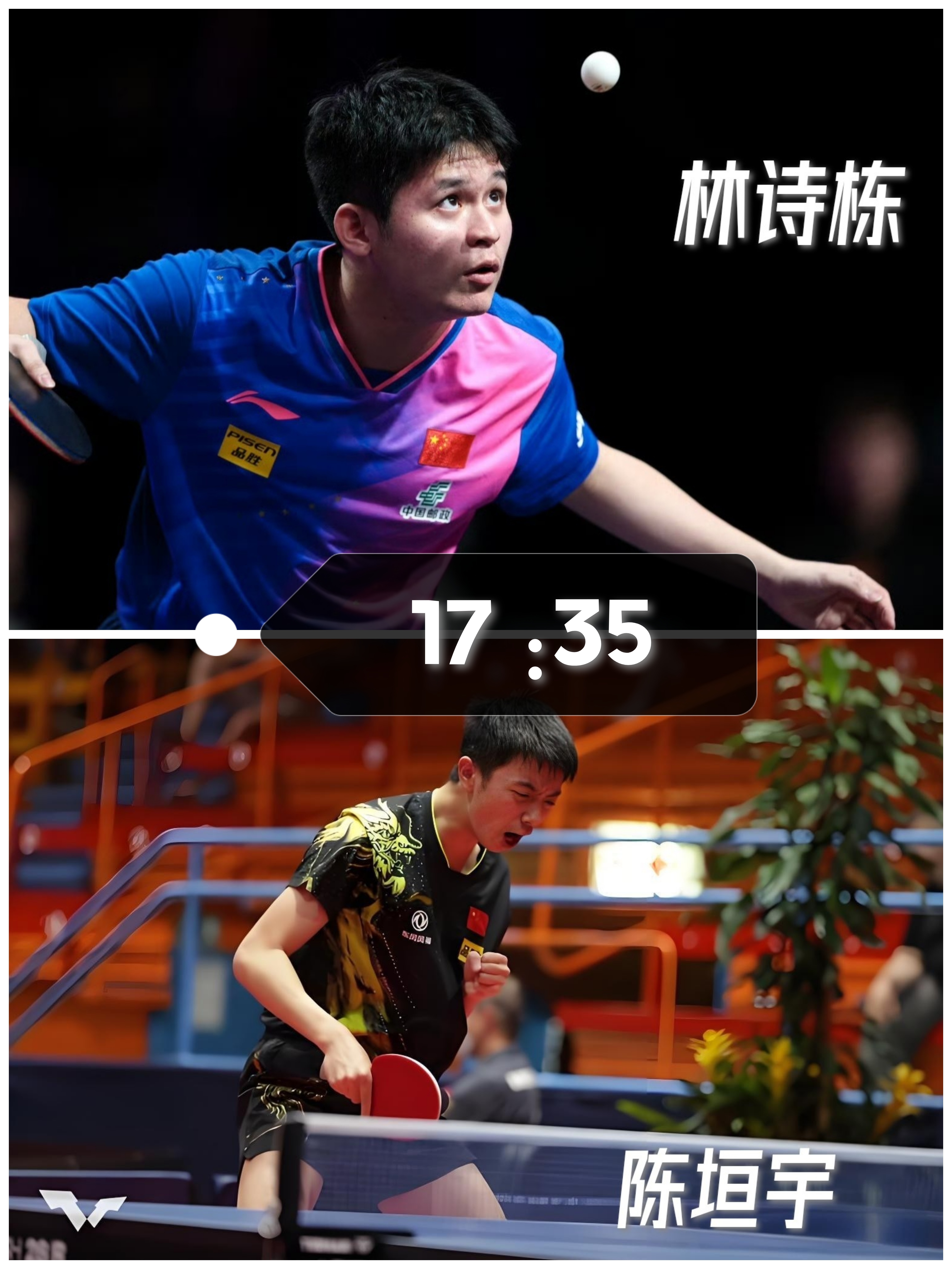 17:35,林诗栋对阵陈垣宇,向鹏对阵日本宇田幸矢,两组比赛同时开打。