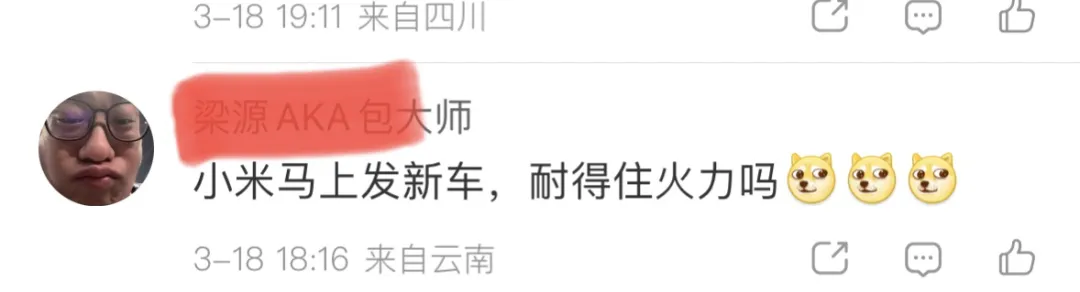还有网友表示:小米马上发新车,耐得住火力吗。