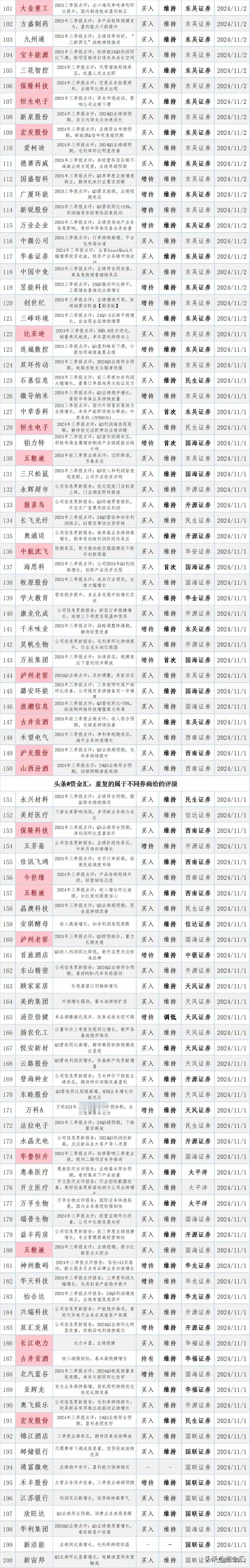 11月3日最新更新,券商给予“买入评级”个股名单曝光