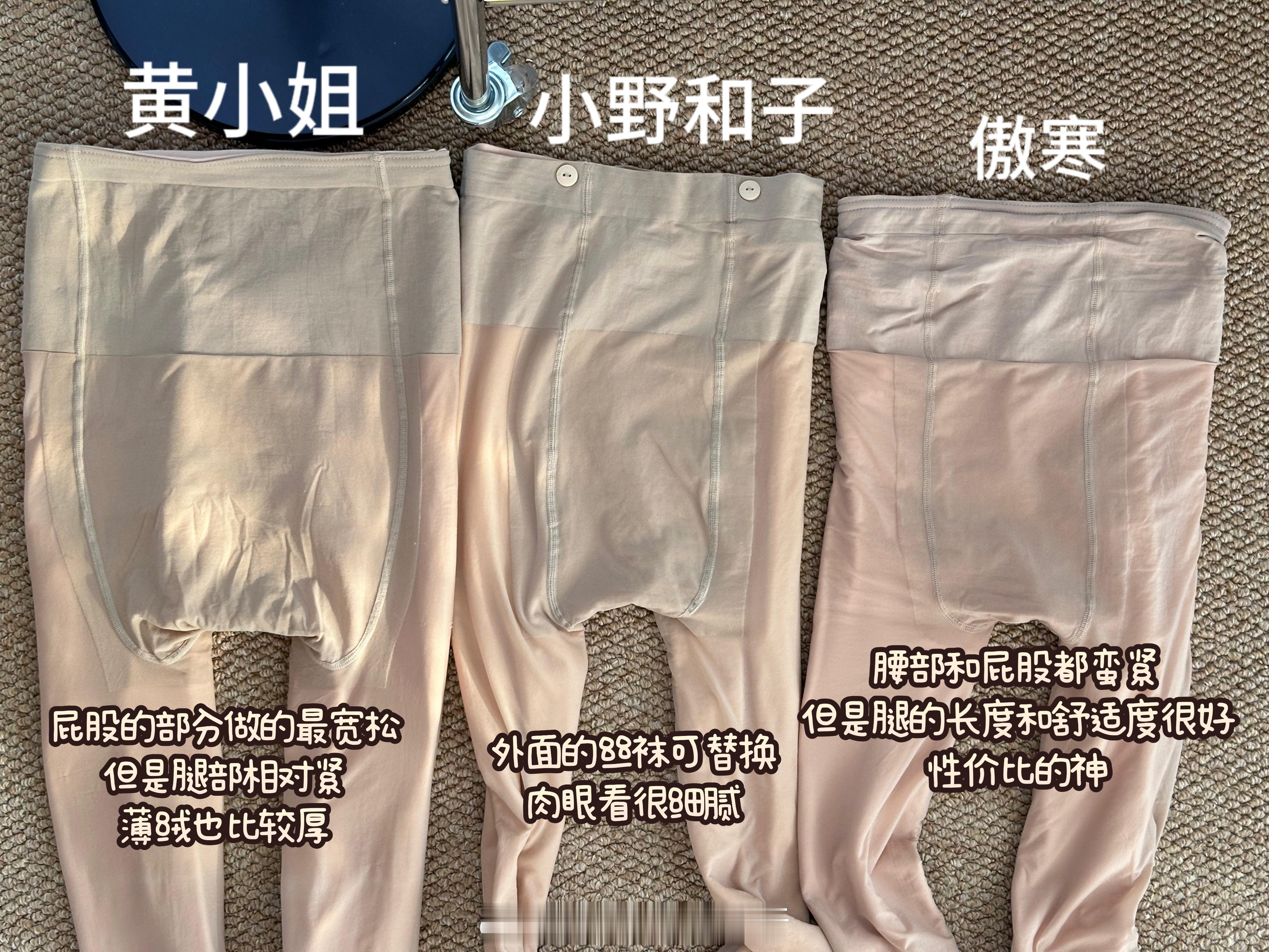 ⭐黄小姐我买的1.5中间色的高妹款薄绒。更适合胖妹妹和高妹,它的裆部非常宽松,但是腿部压力大一些,穿上就蛮显瘦的而且不勒屁股,够长也不掉档。但是我感觉它的薄绒就蛮厚的,所以我的膝盖处会有一些褶皱。没有假肢的感觉但是有褶,缺点是会觉得贴肤度不如其他两个。