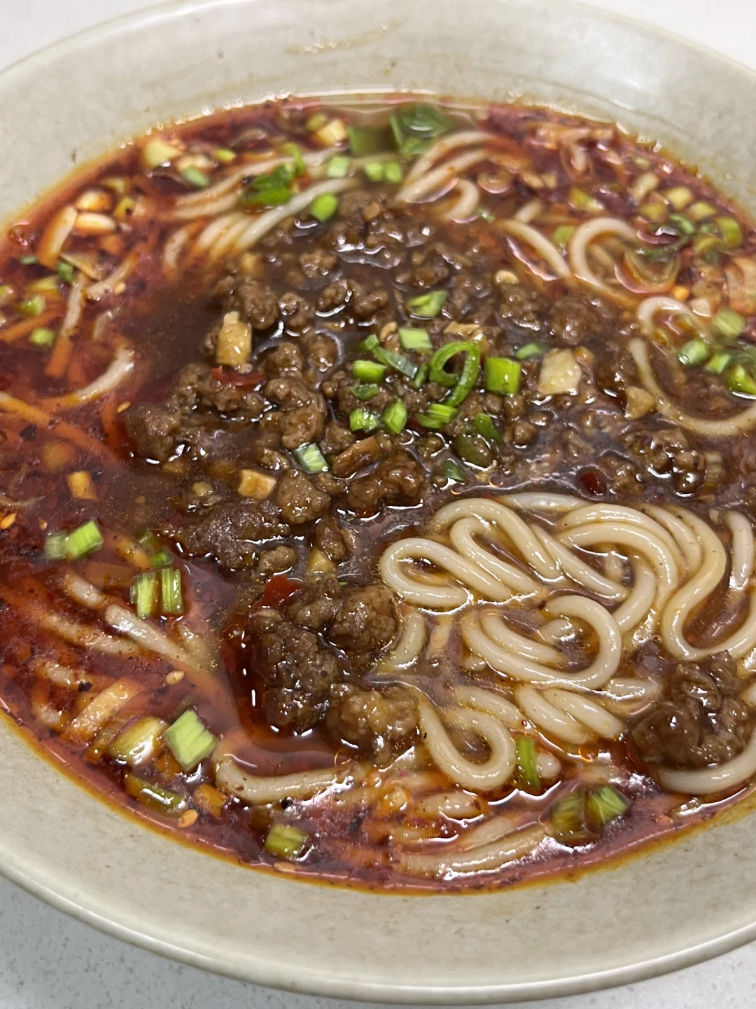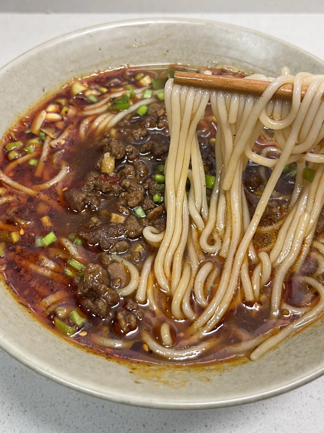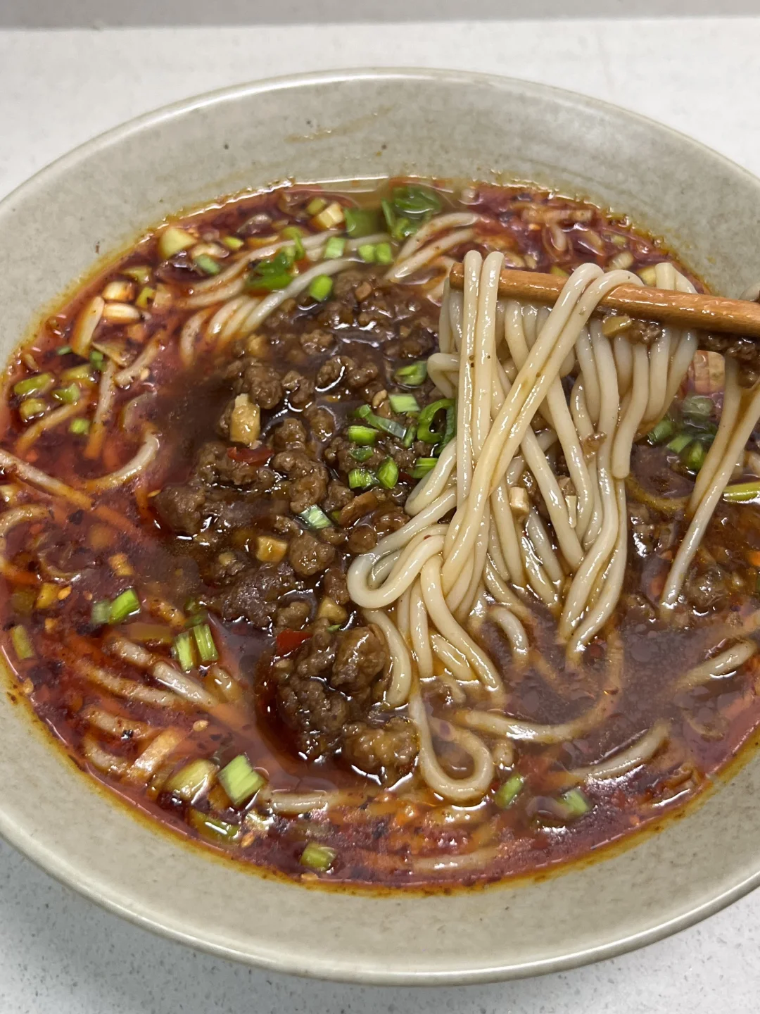 1️⃣锅中烧油,肉末炒干水分,放入姜蒜末翻炒,加一勺豆瓣酱、一勺黄豆酱炒出红油 2️⃣加生抽、老抽翻炒(肉末多的可以放点盐)加小碗水煮5分钟,放淀粉水勾个芡 3️⃣调汤底㊙️:碗中放葱花、蒜末、一小勺猪油、少许盐、花椒面、胡椒粉、榨菜、辣椒油、生抽、醋、香油 4️⃣米线煮熟,面汤和米线捞入调料碗中,浇上肉末,撒葱花✅