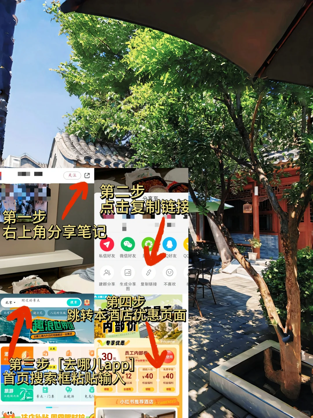 ①复制笔记链接到去哪儿旅行app