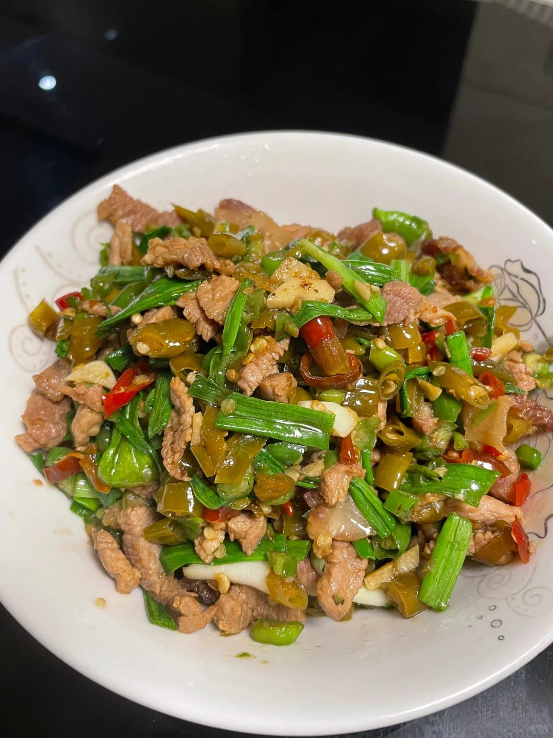 今日菜谱🥬 酸辣椒炒肉 清炒土豆丝(酸辣口[喝奶茶R]) 炒白菜苔(又到了有白菜苔吃的季节了[自拍R])