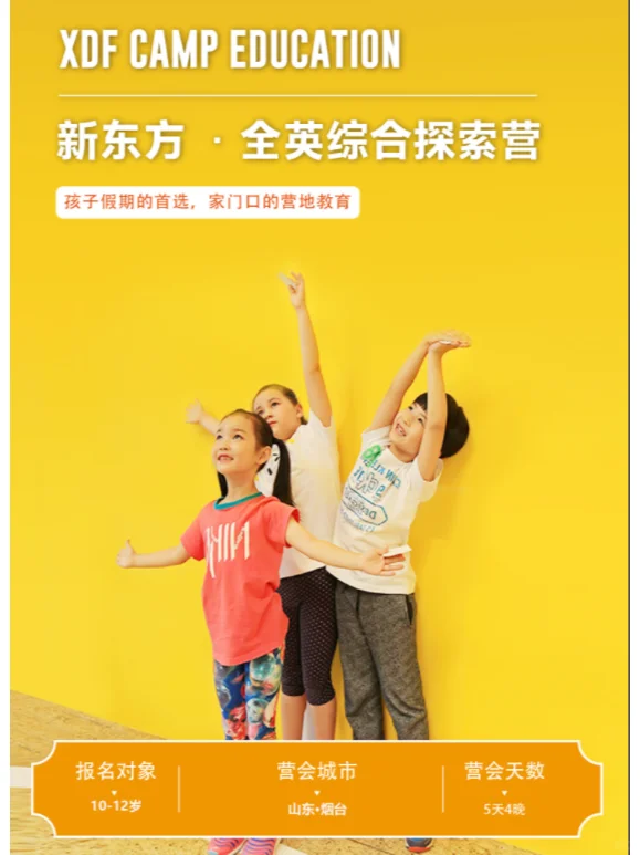 [星R]烟台全英探索营,在这个寒假启程! ⏰开营时间:1月16日 [微笑R]适合年龄段:10-12岁,6-9岁 [天幕R]营地地点:山东 烟台 [烟花R]营地价值: [一R]优选自执行营地,不插电环境 [二R]年龄段专属,让孩子成为主角 [三R]家长放心,孩子健康开心 [烟花R]在营地中的收获 [一R]自然浸泡,无恐开口:全英课堂通过互动和游戏,创造自然的语言环境 [二R]跨学科思维,全面发展:通过英语理解数学,科学,艺术等多个学科,培养孩子的逻辑思维和综合能力 [三R]全球视野,未来无界:帮助孩子建立国际视野,增强自信心 [烟花R]营会目标 [一R]从“我不说”到“我能说” [二R]从“我不会”到“我能做” [三R]从”我犹豫“到”我自信“ [烟花R]教育模型 [一R]知识扩展:通过自然,文化,科学和艺术四大维度的趣味学习,激发孩子对英语的兴趣 [二R]能力提升:通过真实生活问题设计的趣味游戏和互动环节,让孩子在全英文环境中解决问题,培养批判性思维和团队合作能力 [三R]情感联结:根据孩子的年龄特点,精心设计了适合不同年龄段,性别和兴趣的集体活动,在轻松安全的英文环境中,让孩子通过互动建立情感联系。 [哇R]感兴趣的宝子们赶紧厚苔踢踢小编吧,现在咨询立享更多优惠哦![大笑R]