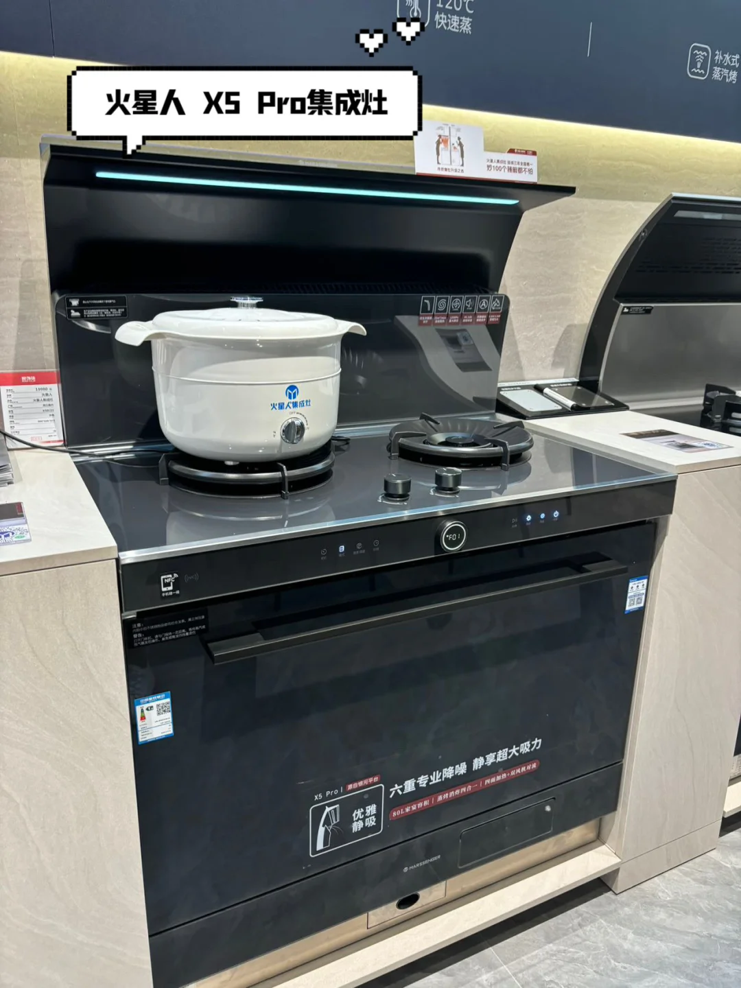 一开始我也和很多家庭一样,对开放式厨房的油烟问题心里直打鼓, 生怕一不小心客厅就变成了“烟熏火燎”的重灾区。 今天在线下门店看到火星人 X5 Pro集成灶, 感觉真的是个不错的宝藏选择! 这集成灶对于颜控来说真是心头爱了, 杏白的配色完全不发灰,实物和宣传图一样美, 清新脱俗,奶里奶气的,看着就舒心。 而且它集成了烟机、灶具、蒸箱、烤箱、空气炸锅与一体 功能强大的可怕,但占地面积都不到1平方 厨房瞬间变得宽敞多了,储物空间都翻倍了! 做饭的时候,那5.2KW的大火力, 炒个蔬菜嗖嗖的,十秒钟就断生,效率杠杠的。 想吃那种带锅气的脆脆口感的菜这不就有了! 下柜那个蒸烤炸消四合一的设计, 80L的大容量,家庭聚会都不在话下。 清蒸鱼,烤鸡,蛋挞,各种小甜品,都能妥妥拿捏~ 最让我满意的还是它的吸烟能力, 侧吸下排设计,15cm的低空净吸, 油烟还没来得及飘远就被吸得一干二净。 操作起来也特方便, 触屏操控,预约定时,远程操控都OK, 而且它还特别静音,不到50分贝, 就算家里有小宝宝也不怕吵到他们睡觉。 这集成灶不仅能提升厨房的颜值, 还能大大提高我们的生活质量 真是选它没跑了!