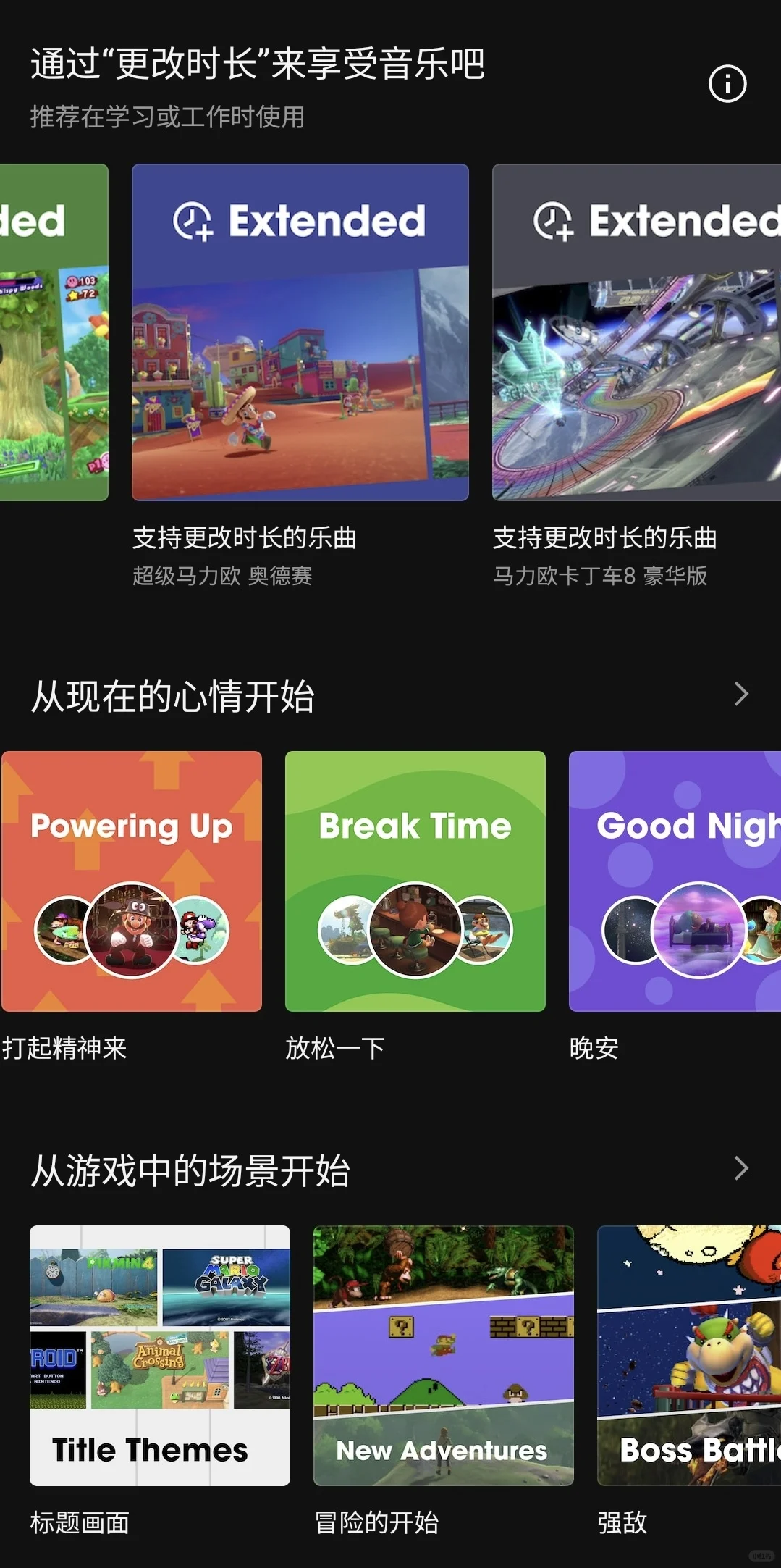 《超级马力欧兄弟 惊奇》原声音乐集今日加入 Nintendo Music,一共86首曲目~ 以任天堂游戏的数量来算,光每天更新一款游戏,都可以更新好几年了[笑哭R][笑哭R] 音乐还可以按【角色】分类,按【场景】分类,按【心情分类】,甚至港服以外的服务器还能够按你今天游玩的游戏来生成歌单。 听着【动森】睡觉,听着【野炊】起床,听着【马里奥】开车,即便是无法天天玩游戏的社畜,任天堂游戏的音乐也能够渗透进我们的生活里,真得不要太幸福[哭惹R][哭惹R]