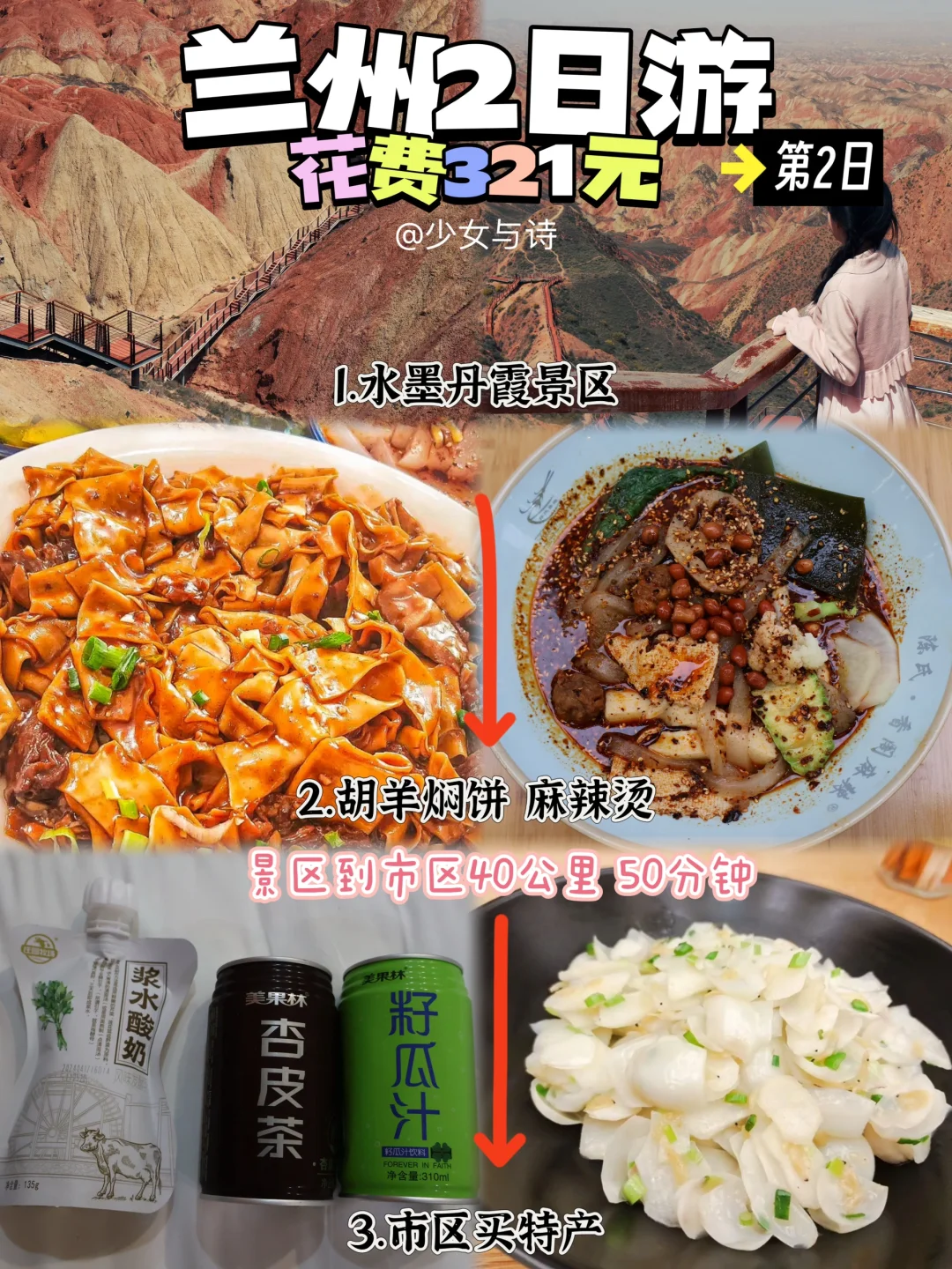 景区内或附近餐馆的胡羊焖饼,60 - 80 元一份,味道浓郁。别忘了来一份麻辣烫,各种食材搭配浓郁汤料,热辣过瘾,价格根据所选食材而定。
