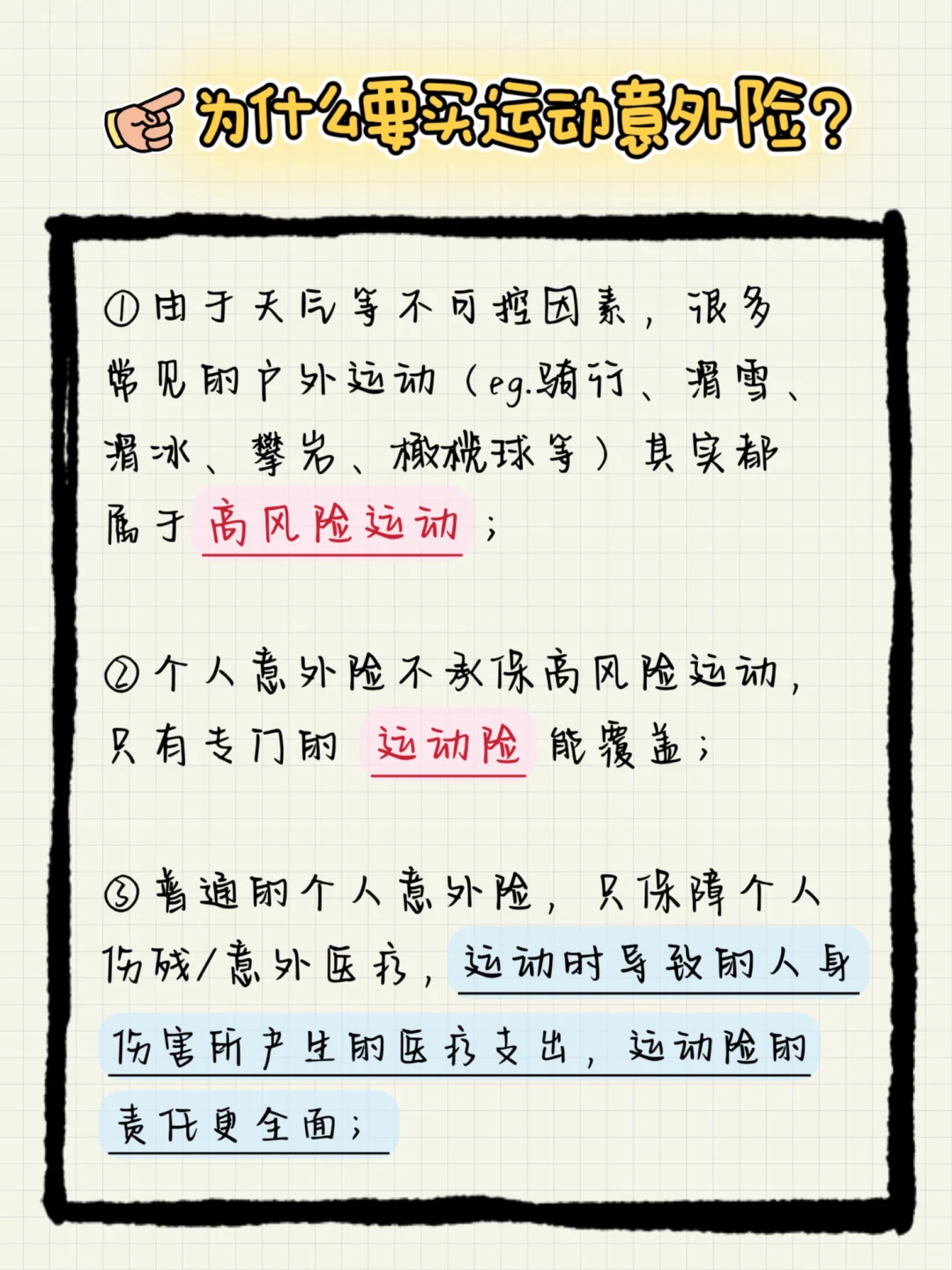✅保障范围广,可以承保普通意外险不保障的高风险运动(eg.骑行、滑雪、冲浪等,具体以产品详情页展示为准)。