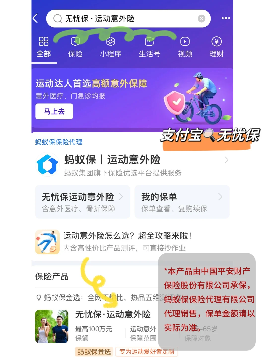 点击左下角↙链接就能直达投保页,或者上支付宝搜「无忧保·运动意外险」查看,如果像我们一样,全年大户外的频次较高,真的非常推荐👍