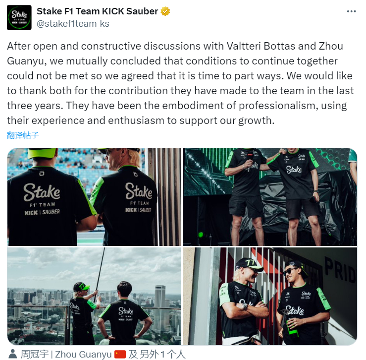 #索伯官宣周冠宇和博塔斯离队# #周冠宇离开索伯车队#