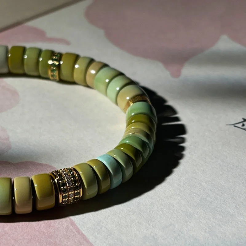 绿松的颜色是特别丰富的 这款直切珠型的渐变色的就很清新自然。 Diy款,独属于你的美丽💕