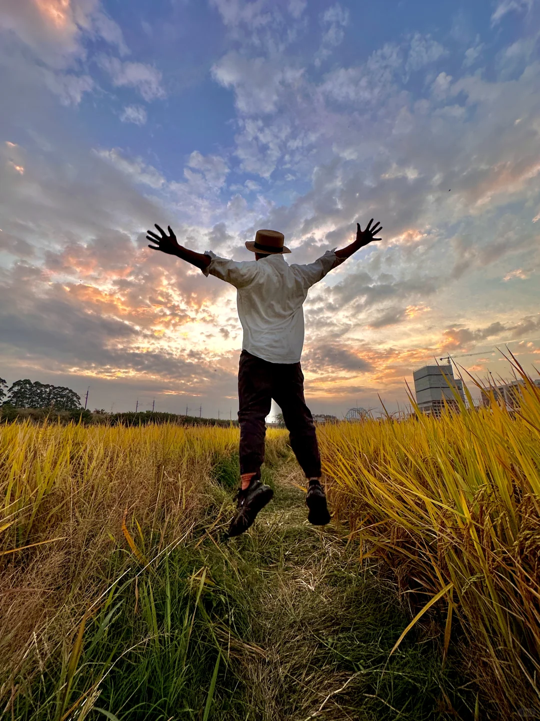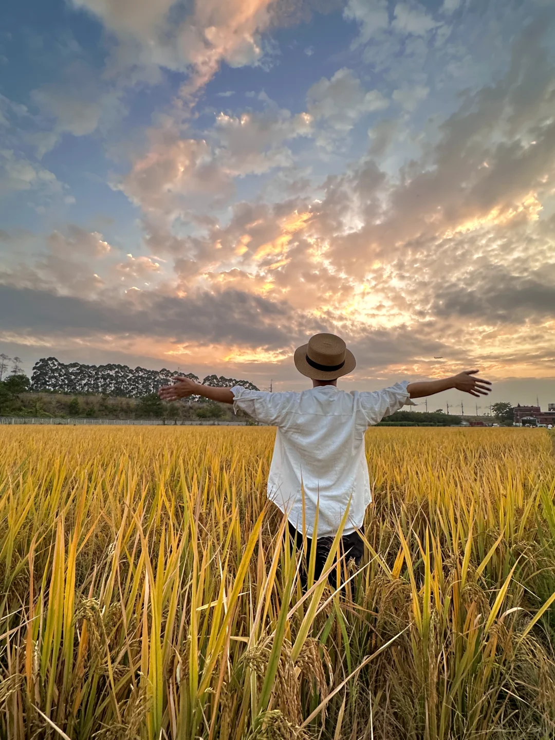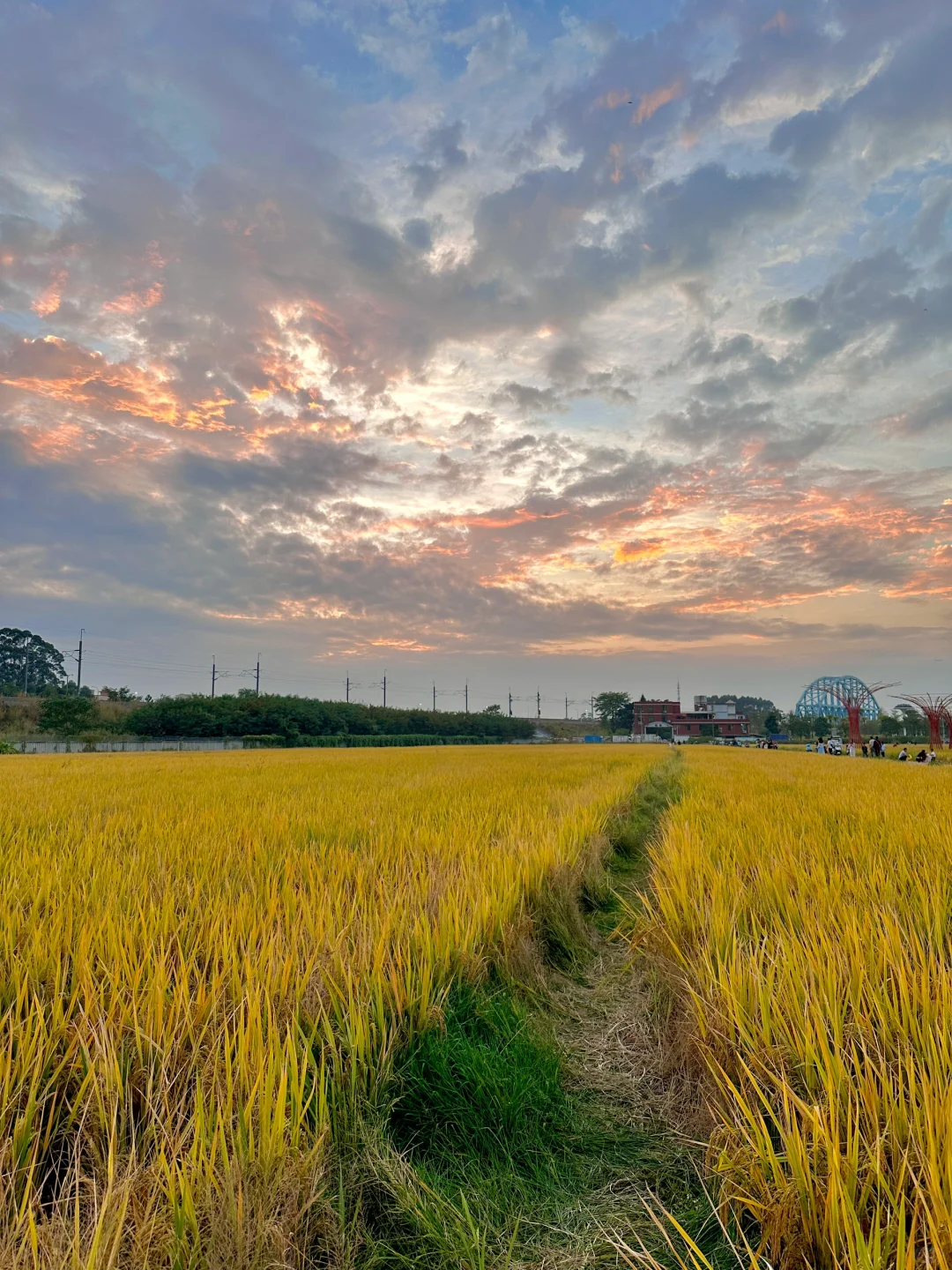 没想到这片稻田还没收割 还能在尾声前赶一趟稻田[偷笑R] 稻田估计不久就要割了 下午阴天,以为蹲不到好天气起了 惊喜在最后来了 出了一片彩色云霞[哇R] 📍:夏良农业公园 🚇:龙归或夏良站,再🚗或🚲