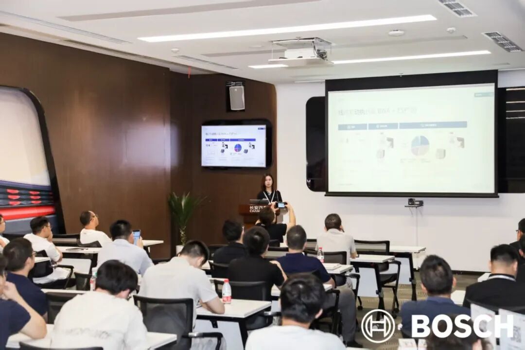在技术论坛环节,博世专家团队呈现多场高质量专题报告,围绕线控制动系统、博世华域转向产品路线规划、ETAS嵌入式AI解决方案、海外市场咨询服务以及博世力士乐智能拧紧系统等议题展开前沿技术分享,并与长安汽车相关部门负责人深度交流,共同探索更深层次的合作模式与新一代技术协同创新路径。