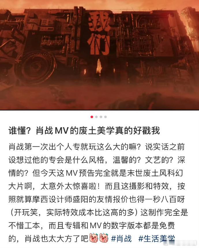 #肖战我们mv电影质感##肖战新歌mv解读# MV中的肖战太会讲故事了,《我们》这波质感好到像在看电影,每一帧都值得截图当壁纸!作词参与的他,这次真的拿出满满诚意!