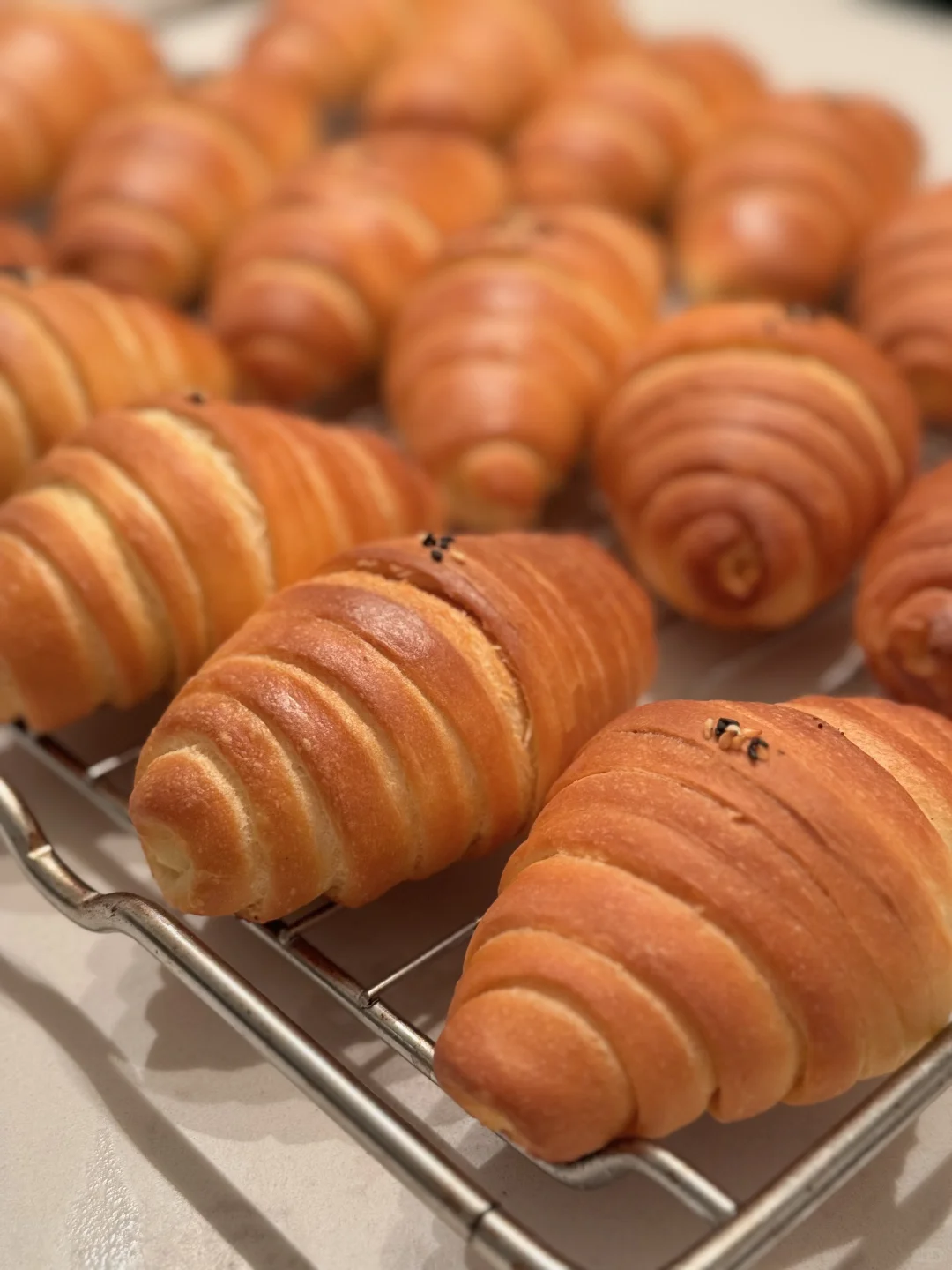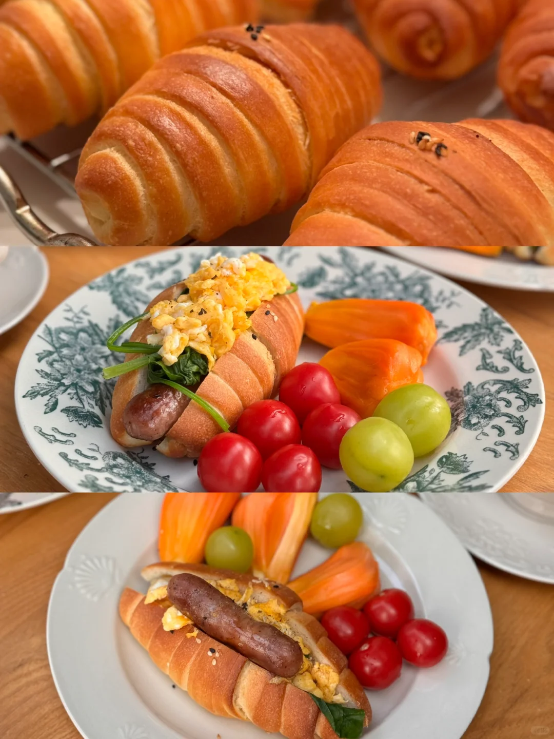 昨晚做了四小时的海盐卷 累麻了…果然不能轻易尝试新配方 粘哒哒的面团整形难度超级加倍 好在成品没有太翻车 提前备餐的好处是 今日又是快手早餐~[暗中观察R]