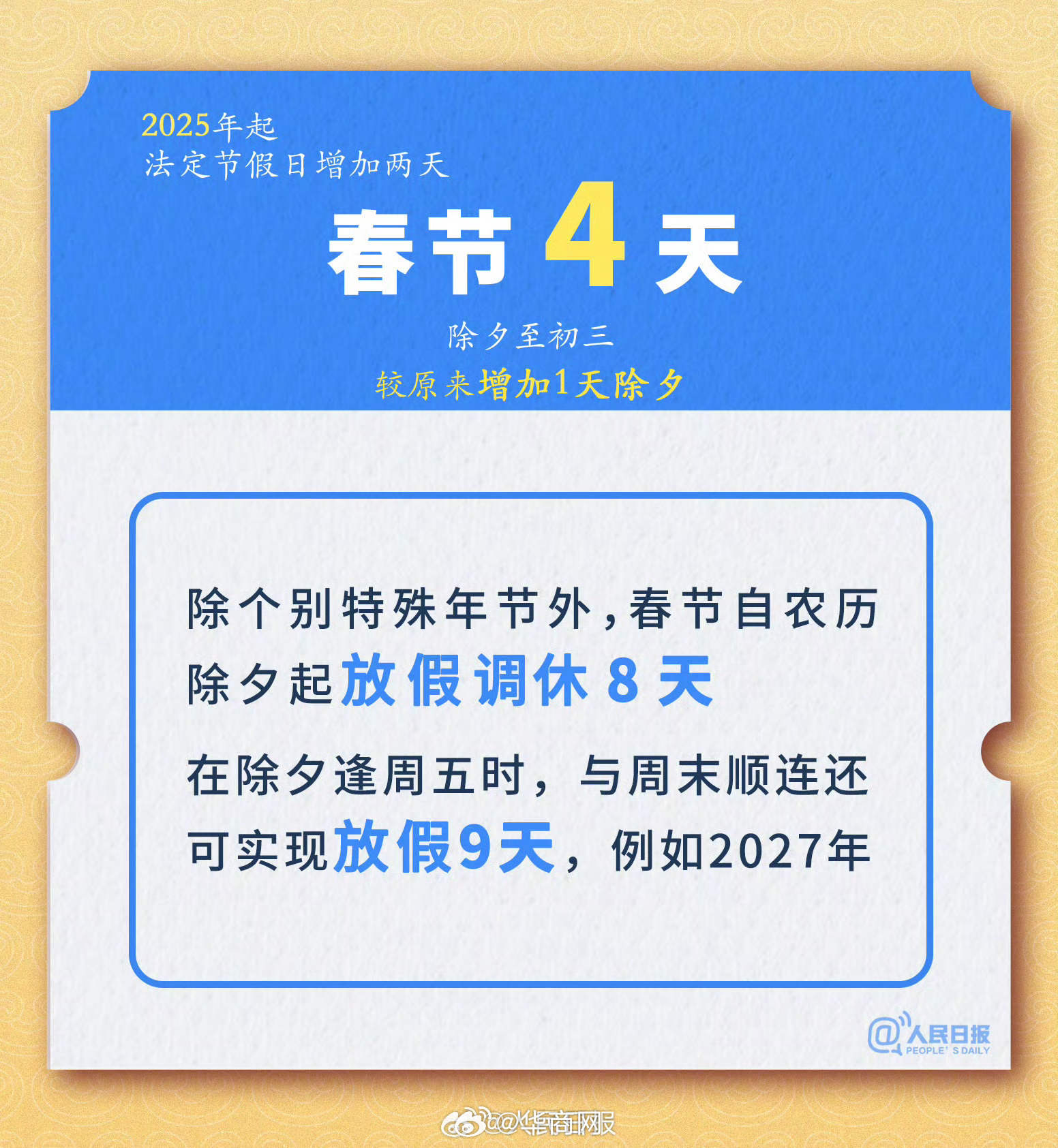 【#除夕放假#!#法定节假日增加两天#】2025年起: