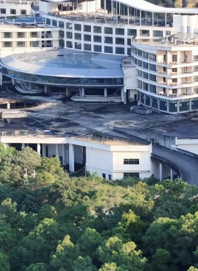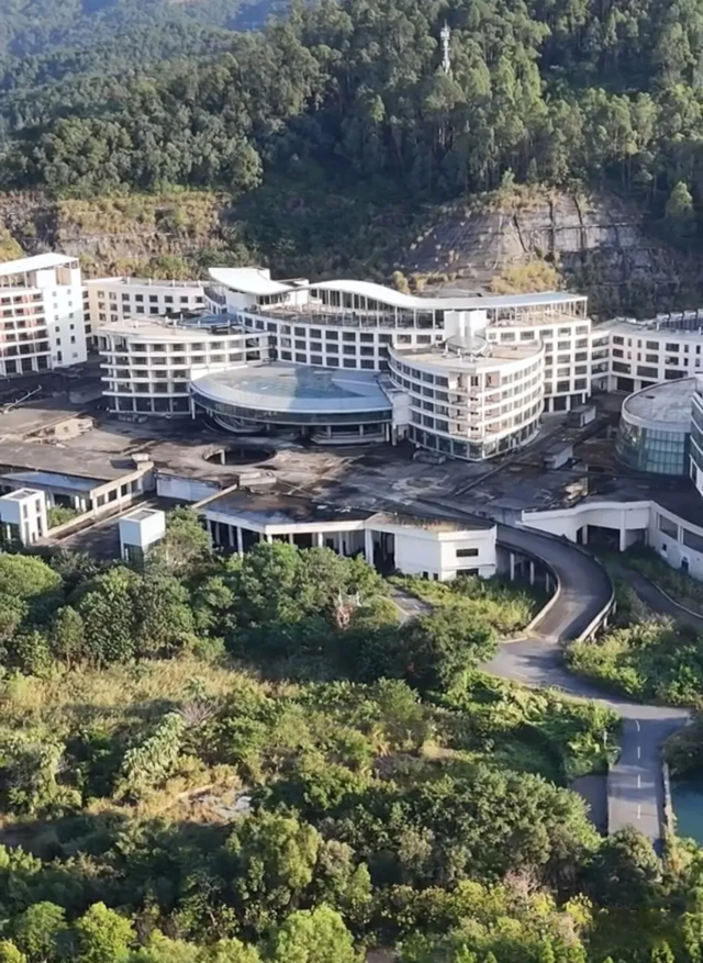在广东的深山之中,一座未完成的建筑静静匍匐在山体之间。钢筋水泥的结构早已裸露在外,四周草木蔓生,几乎要将这庞然大物吞没。