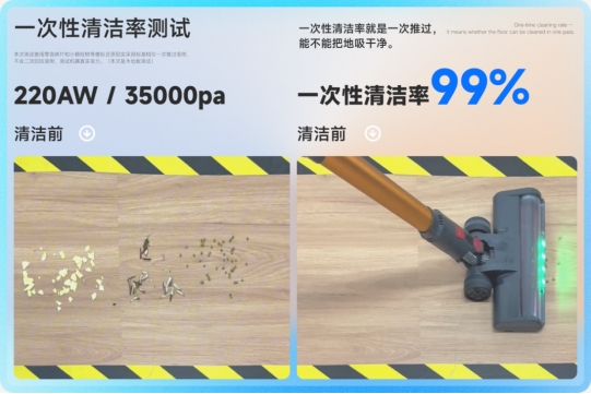 从上面的数据可以看出CEWEY虽然电机转速略低于追觅,但CEWEY DS18的核心参数是位于优势前列的,能有这么大的性能,是因为CEWEY DS18通过两大核心技术精密协调,搭载12万转高效动力系统与复合锥形气旋分系统,高达35000Pa的真空度和220AW的吸力,在强劲吸力和高真空度之间取得了很好的平衡。