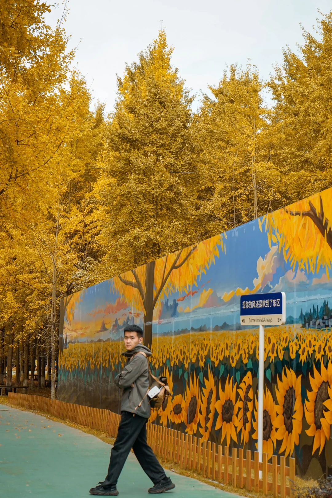 1️⃣银杏林的中间新修了绿色的步行道,还多了一些拍照打卡点