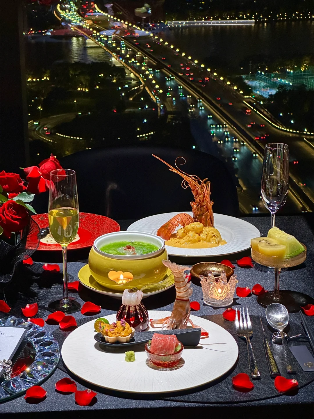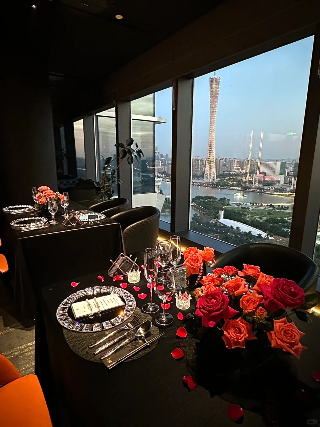 带每一任对象来过的餐厅😭 在26楼高空俯瞰漂亮的珠江景色 高贵奢华的环境,氛围感很好 合适过生日、情侣约会、朋友聚会party -