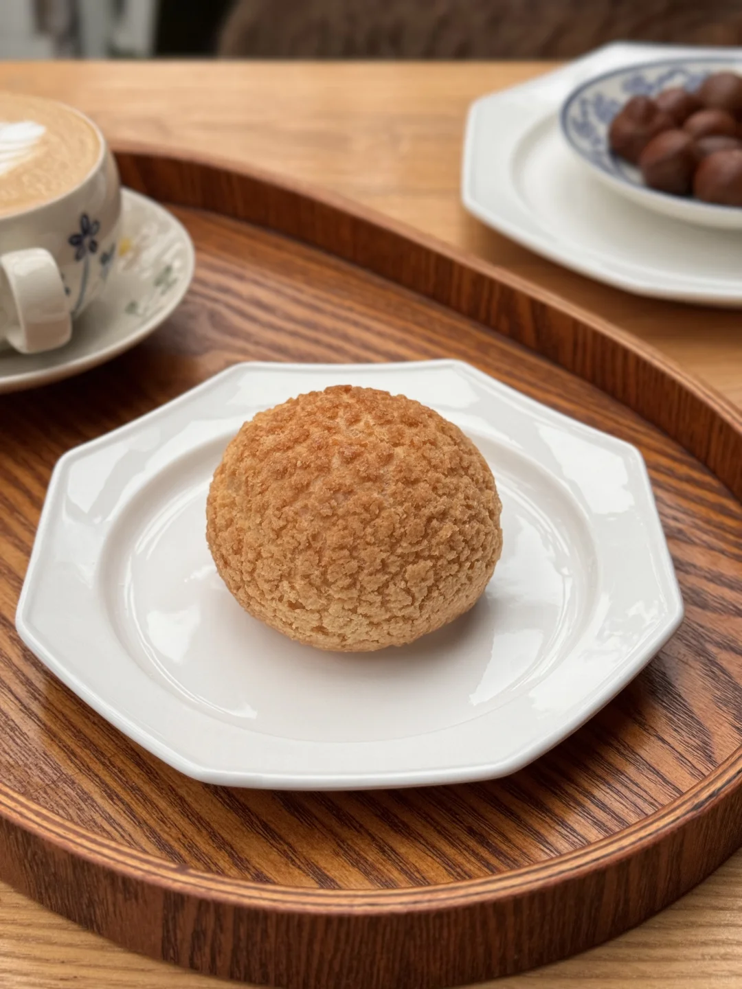 好久没吃泡芙 又有点想念了~[害羞R] 今天在家休息 上午做了一盘酥皮泡芙 下午困的不行冲上一杯咖啡 配上一个甜甜的奶油泡芙😋 美好的下午茶时光