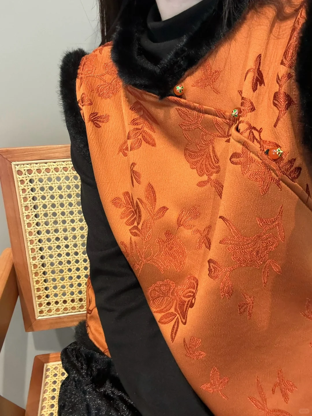 南瓜橘棕色|氛围感盘扣马甲安排上咯!