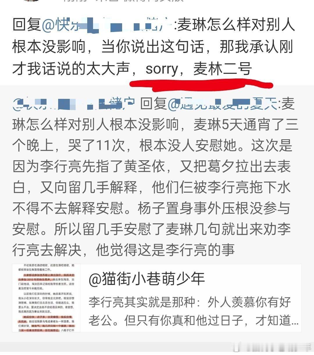 现在最讨厌的就是,网友一边倒批判麦琳,同情李行亮,这很不正常,但凡你有一点质疑李行亮,你就被打成“麦琳一号”“麦琳二号”,好恶心,他们的婚姻绝不是一个人的问题,如果非要说是一个人的问题,只能说他还没有经过婚姻洗礼[黑线][黑线][黑线]