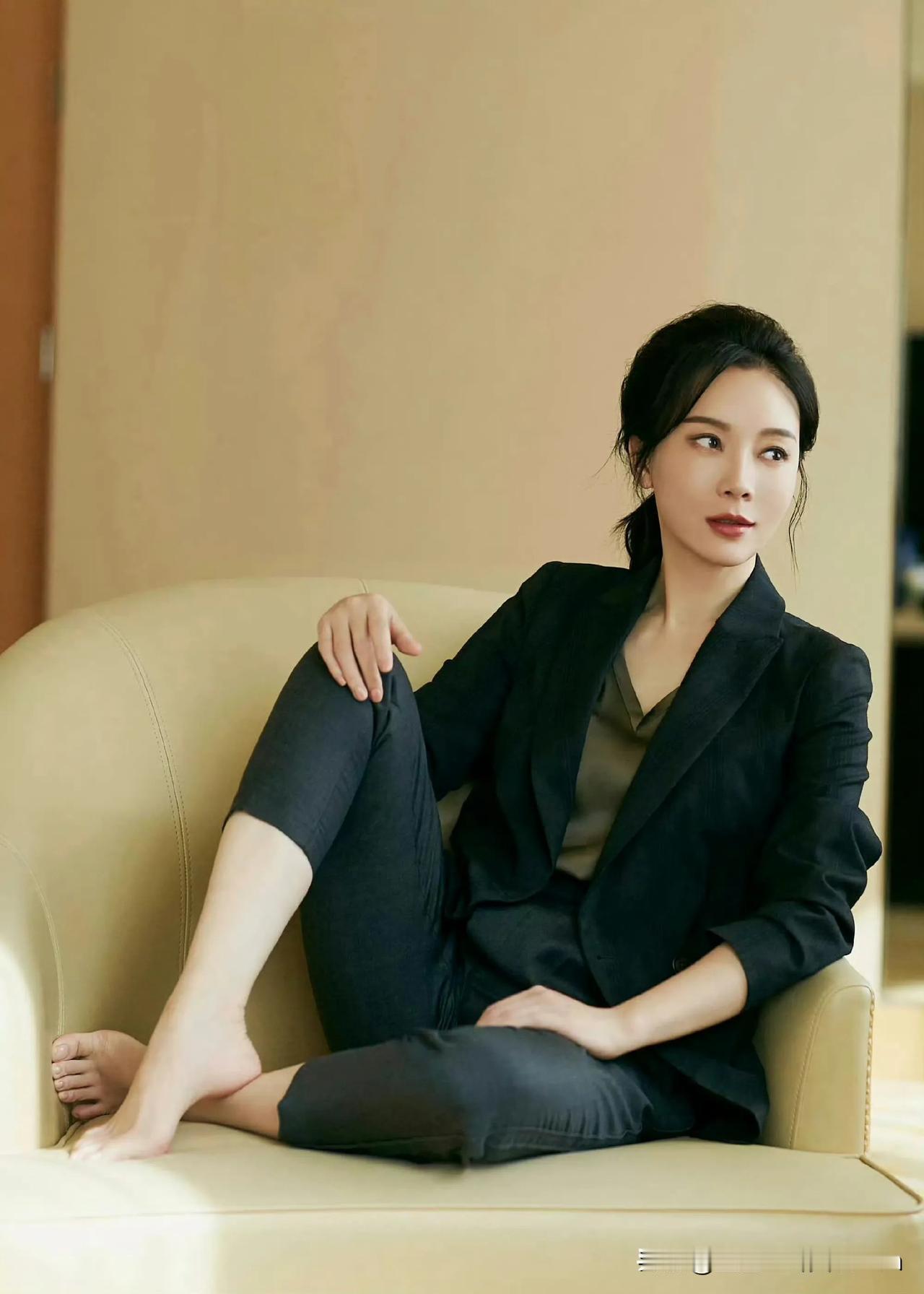 陈数优雅职场风,黑色西装搭配时髦高跟鞋,尽显干练气质