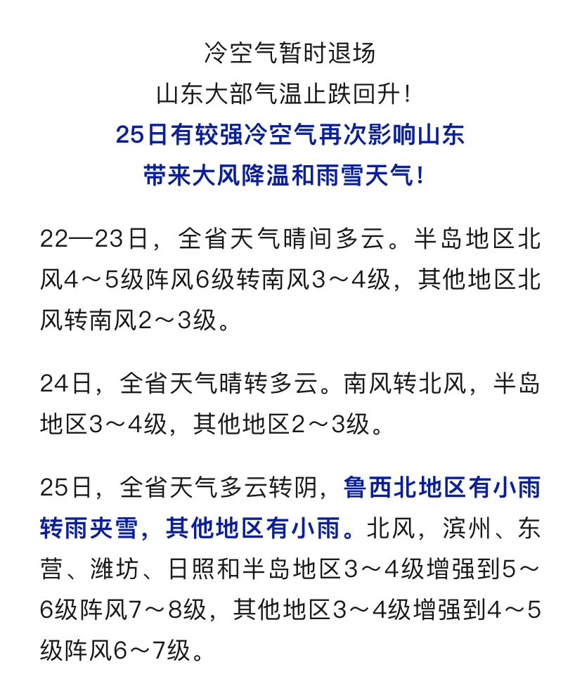 🌟25日有较强冷空气再次影响山东带来大风降温和雨雪🌧️❄️天气!