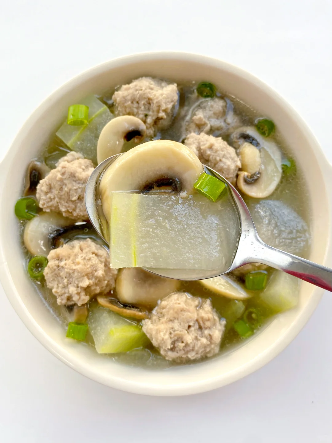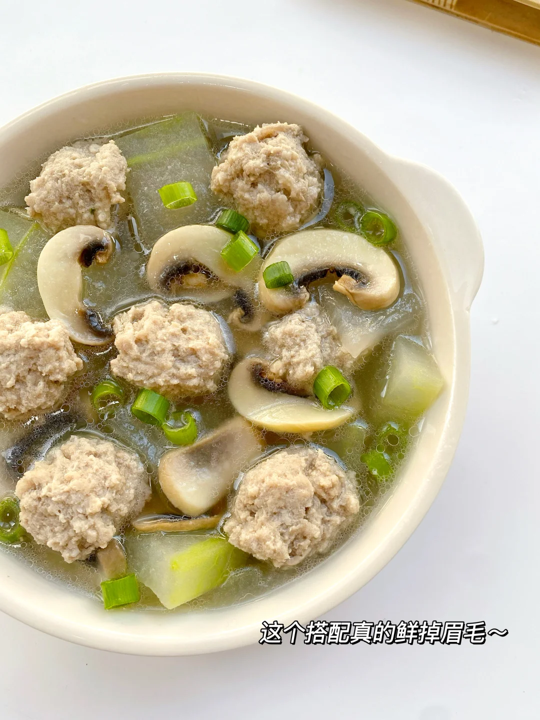 有亿点点好喝的冬瓜口蘑肉丸汤‼️鲜掉眉毛呀