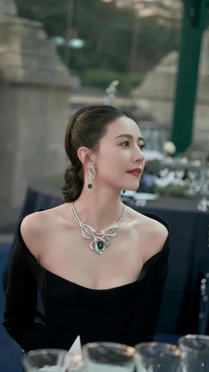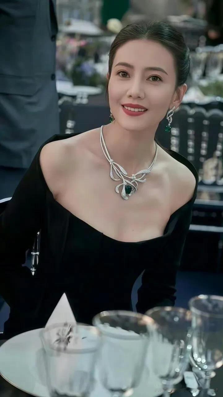 高圆圆优雅的黑裙,闪耀的珠宝,迷人的侧颜