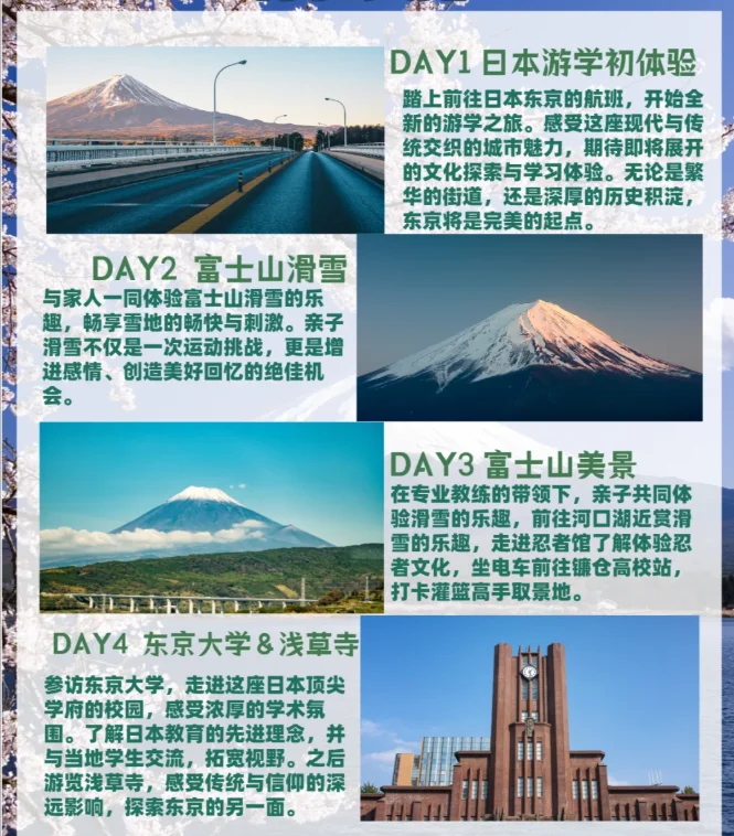 🔹东京大学 🔹富士山滑雪场 🔹富士山五合目 🔹浅草寺