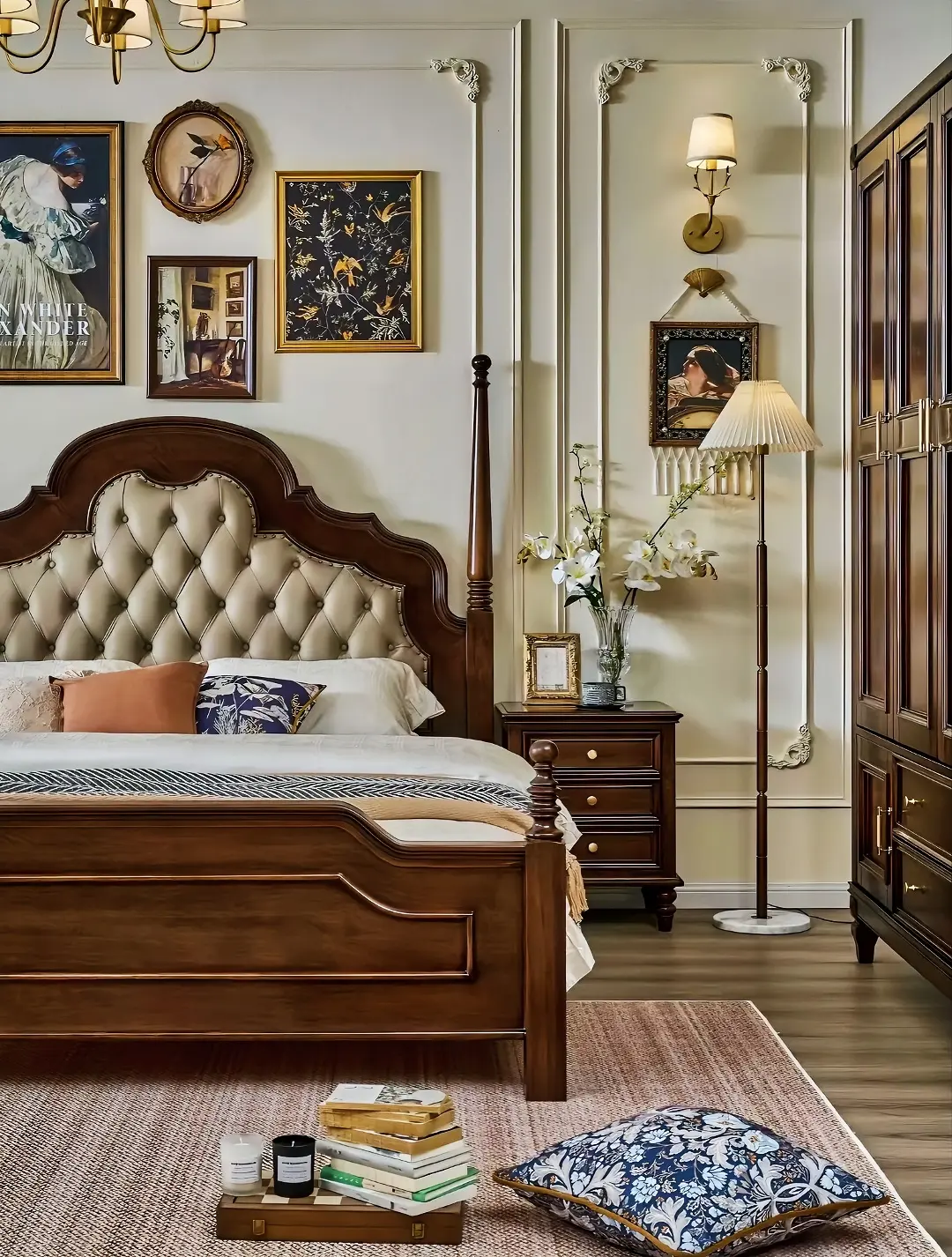 女孩子喜欢的浪漫法式复古独居小窝,精致的石膏线条,搭配胡桃木质感的地板...