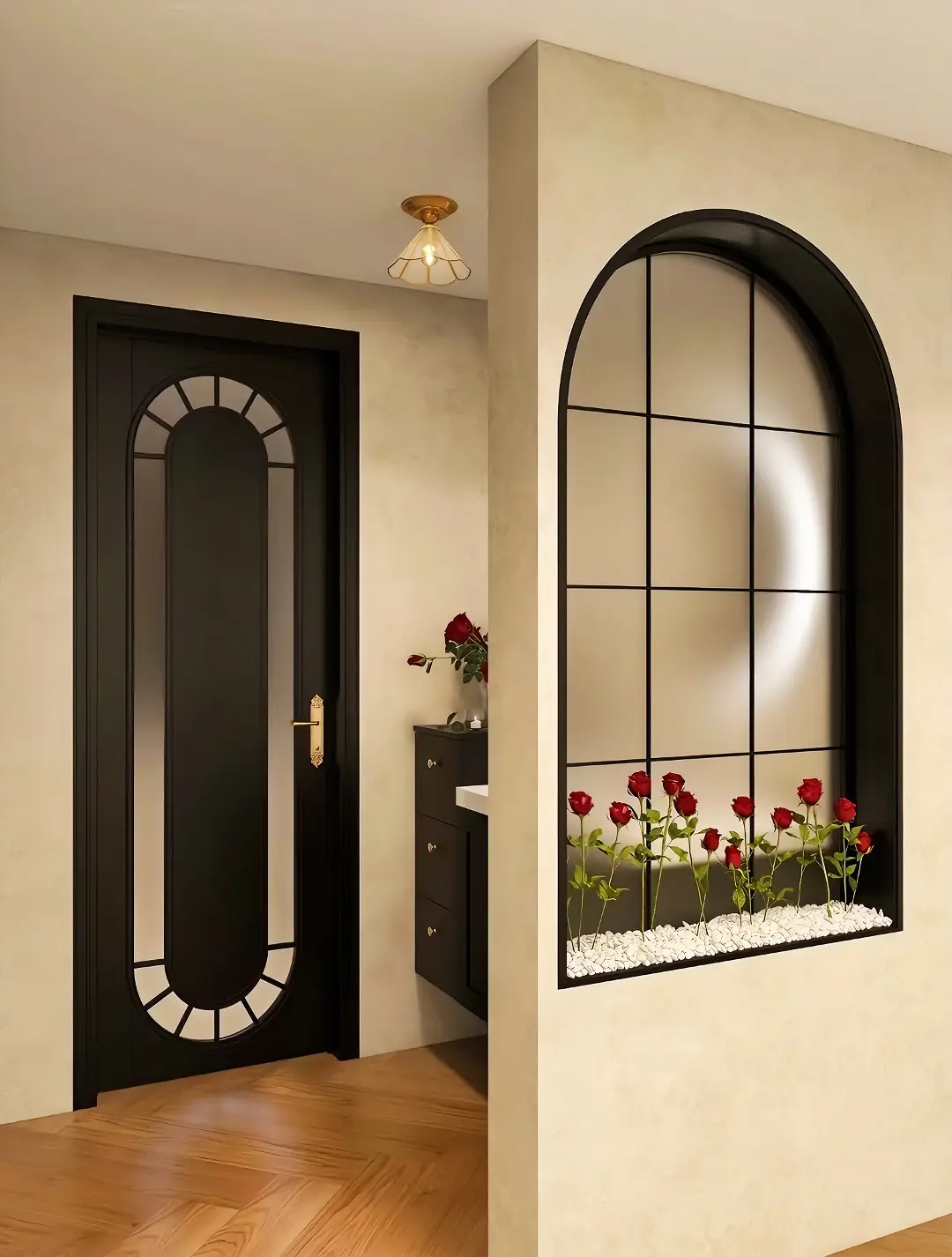 女孩子喜欢的浪漫法式复古独居小窝,精致的石膏线条,搭配胡桃木质感的地板,温馨又浪漫,黑色系的浪漫厨房更显优雅氛围感,用心打造属于自己的梦中情房