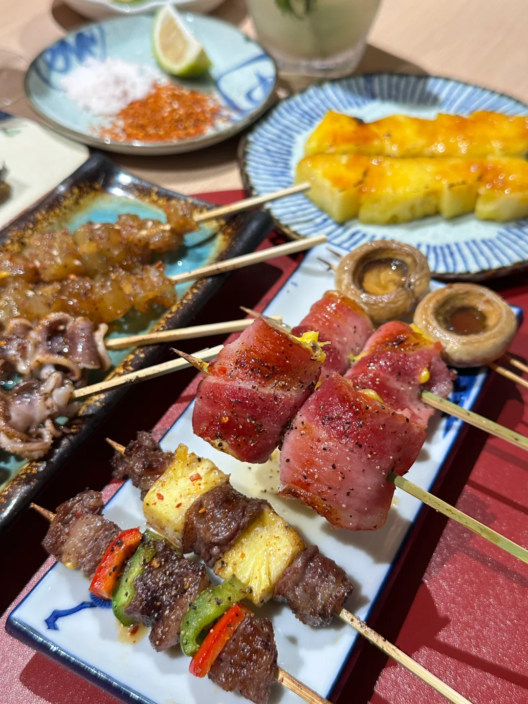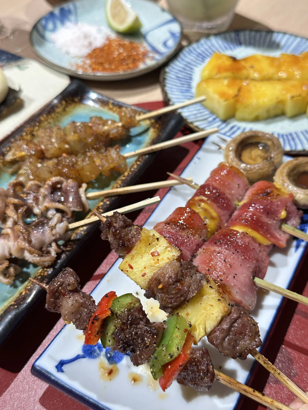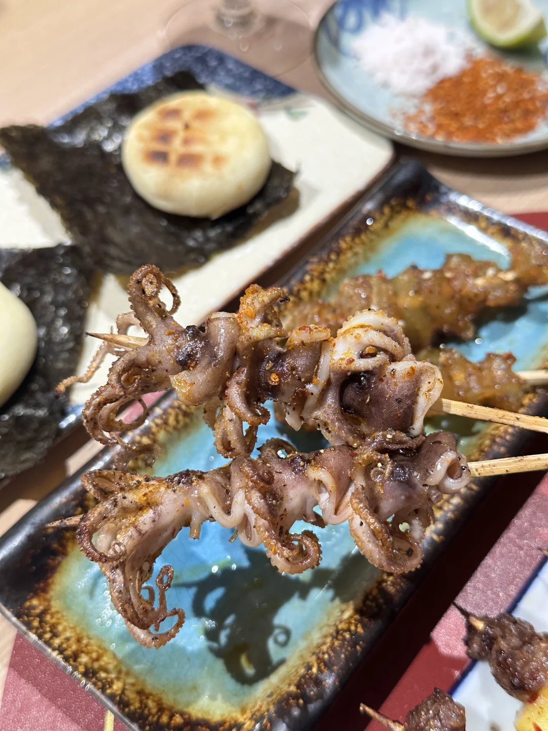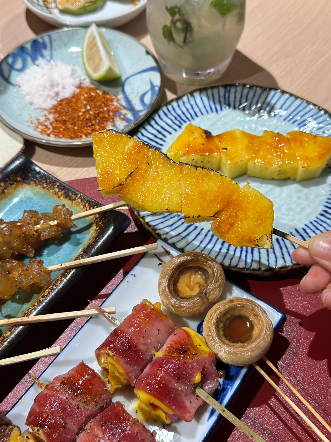 下班和朋友的秘密基地!!! 就在市中心!!!! 已经6刷这家店了!!!! 非常适合和小姐妹下班酒、人均才60~ 坐在板前边烤边吃好chill~烧鸟碳烤出来真的很香! 推荐:碳烤棉花糖冰淇淋,碳烤牛蹄筋,碳烤八爪鱼🐙培根芝士番茄…深夜食堂即视感! 路过一定要试试~