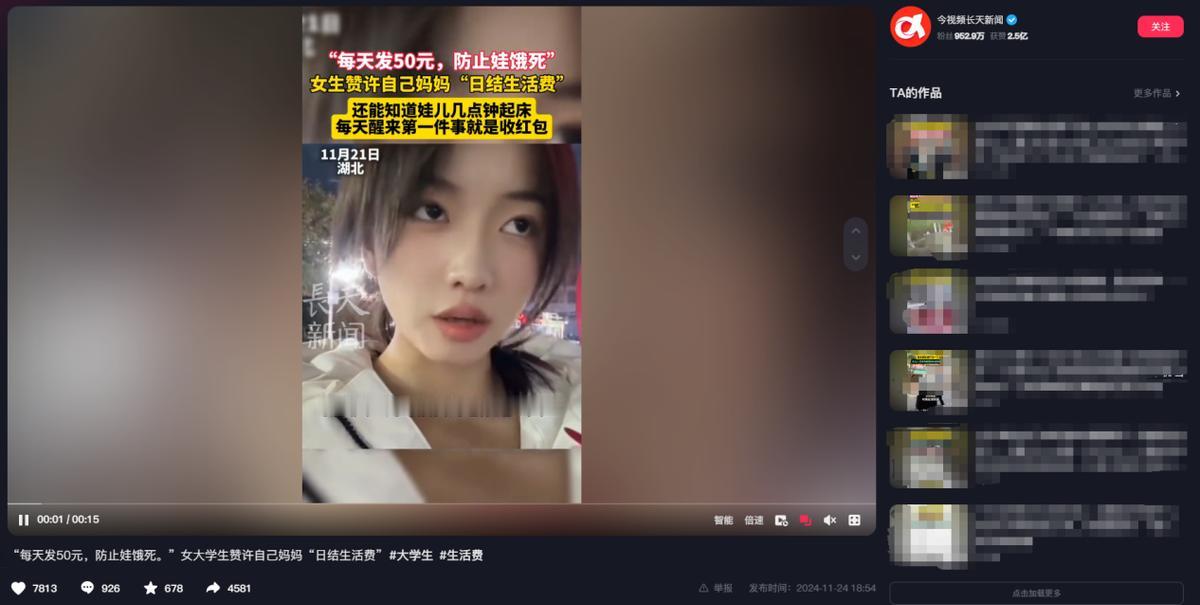 每天发50,防止娃饿死!女生今年大一,不同于别人按月发的生活费,她的生活费竟然是“日结”的,11月21日,她带着疑惑问老妈,却被老妈的回答折服! 林悦(化名)的父母都是上班族,家中虽不富裕,但也算温馨和睦。从小到大,林悦一直是邻里间公认的乖乖女,学习成绩优异。然而,当她踏入大学校园时,却遇到了一个难题——如何合理规划每天50元的生活费。 那天,当同学们纷纷在朋友圈晒出自己按月领取的几千元生活费时,林悦却收到了老妈发来的50元转账,附带一条信息:“宝贝,从今天起,你的生活费改为每天发放了,记得合理规划哦!” 林悦一时愣住了,心中五味杂陈:这是闹哪出啊?难道老妈担心我乱花钱? 起初,林悦以为这只是老妈一时兴起的小把戏,但随着日子一天天过去,她渐渐发现,这50元的日子并不好过。 早餐,一杯豆浆加一个包子,就得花去近8元;午餐,想吃点好的,比如一份盖浇饭,又得近20元;到了晚上,如果还想加个餐,买点水果,那50元就显得捉襟见肘了。更不用说,偶尔还需要买些学习资料、生活用品了。 林悦开始感到焦虑,她不明白老妈为何要如此“折磨”自己。终于,在一个周末的午后,她鼓起勇气,给老妈打去了电话。 电话那头,老妈的声音温柔而坚定:“悦悦,妈妈知道你可能会觉得委屈,但这样做也是我的一片苦心。一来,妈妈担心你月初大手大脚,到了月末饿肚子;二来,这也是一种监督你按时起床、规律生活的方式。毕竟,大学生了,要学会自己管理自己。” 听完老妈的解释,林悦的心情复杂。虽然理解老妈的苦心,但她还是觉得自己像是被“圈养”的小鸟,失去了自由飞翔的权利。 林悦的故事很快在校园里传开了,同学们纷纷投来好奇的目光,有的表示同情,有的则觉得这是老妈的“另类教育”。而网络上,网友们对此也是议论纷纷。 有网友评论说:“这种教育方式太过分了,完全是过度监视,孩子怎么可能自在?再说,孩子早晚要学会自己理财,现在这么管,将来出了社会怎么办?” 也有网友持不同意见:“我觉得挺好的,至少能确保孩子每天都有饭吃,不会因为乱花钱而饿肚子。而且,通过这种方式,孩子也能逐渐学会如何合理规划自己的开销,培养正确的理财习惯。” 随着时间的推移,林悦逐渐适应了这种“日结”生活费的生活方式。她开始更加珍惜每一分钱,学会了在有限的预算内做出最优的选择。她发现,原来自己也可以过得很精致,不一定非要吃大餐、穿名牌,简单的生活同样可以充满乐趣。 更重要的是,林悦开始意识到,老妈的这种做法,其实是在用一种独特的方式教会她节俭和自律。每天50元的生活费,就像是一场无声的考验,让她学会了如何在逆境中成长,如何在挑战中寻找机遇。 如今,林悦已经是大二的学生了,她依然保持着每天规划生活费的习惯。而老妈,也偶尔会给她一些额外的奖励,作为对她努力和进步的肯定。 对于这场生活费大挑战,我深感林悦老妈的用心良苦。在当下这个物质充裕的时代,如何教会孩子节俭、自律、珍惜,确实是一个值得深思的问题。 林悦的故事,或许能给我们一些启示:爱孩子,不一定要给他最好的物质条件,而是要教会他如何面对生活的风雨,如何在逆境中茁壮成长。毕竟,未来的路,终究要靠孩子自己去走。