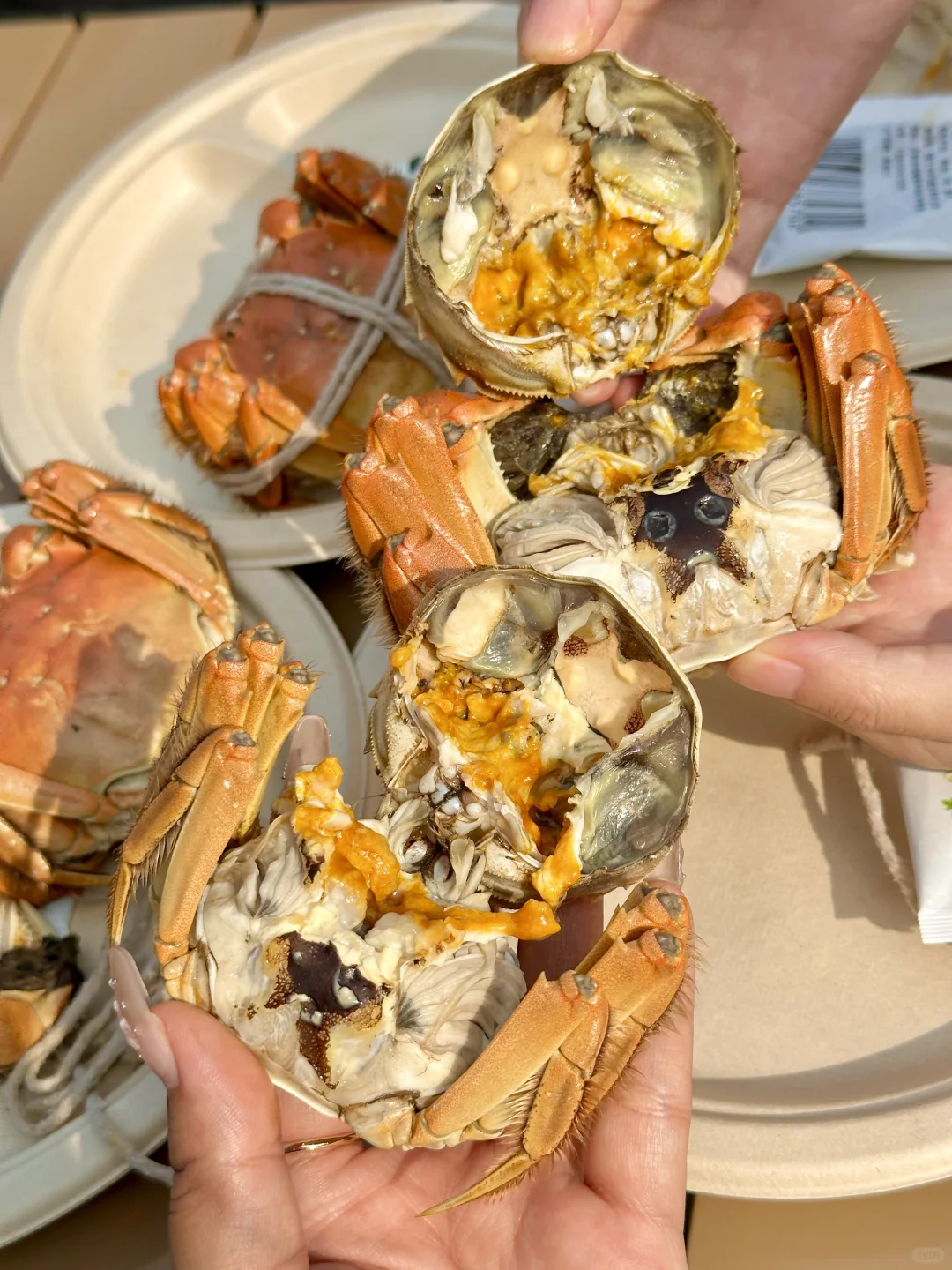 最后还去了螃蟹养殖基地体验了“捞螃蟹”🦀,可以在塘边乘船去亲手体验打捞螃蟹,大塘➕小塘的天然养殖,每个螃蟹个大味美且蟹黄蟹膏饱满,蒸熟后香甜鲜嫩,太好吃了🤤🤤🤤